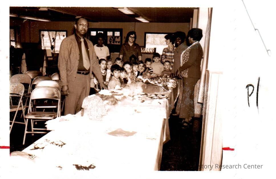 Featured are: John Lee Bryant (man in front).Right side: Christine Parks, Ruby Dunn, Juanita Coy, and Maggie Wofford. The Girl Scouts Brownie Troop 892 on the left include: Kandie Adkinson (middle of photo), Vicki Harlow, Vicki Carpenter, and Kim Crutchfield.Collection
