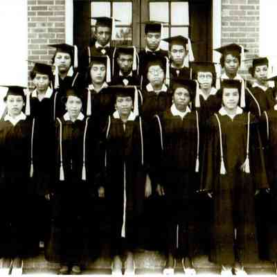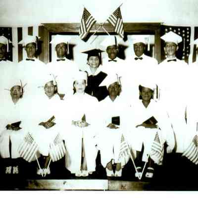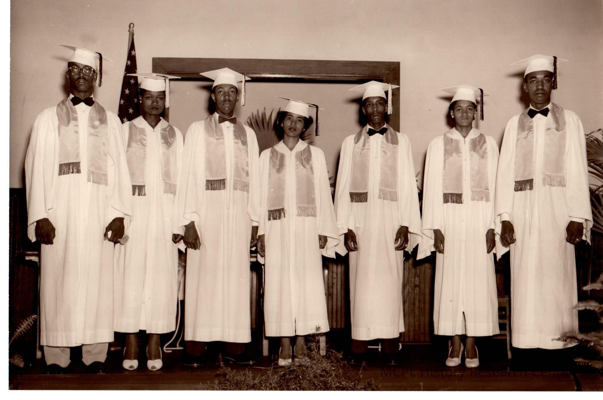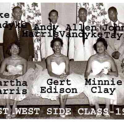 Pictured (L to R) are Robert McAfee, Frances Boyd, Thomas Hines, Lottie Taylor, James Parker, Anna Catherine Taylor, and Jimmy Burrus