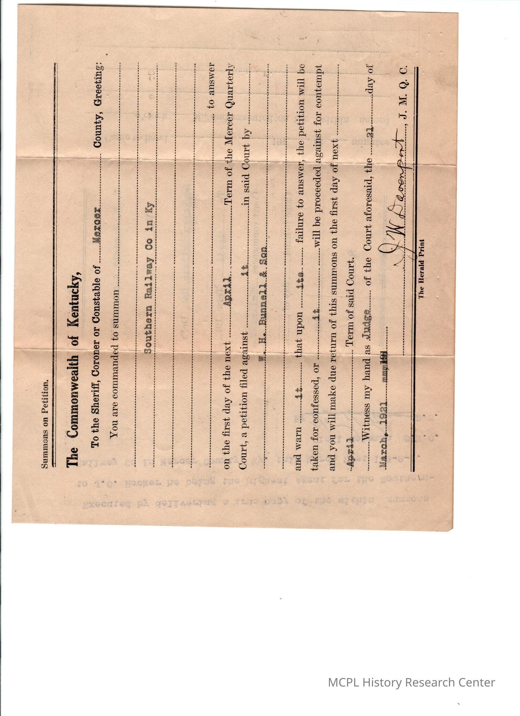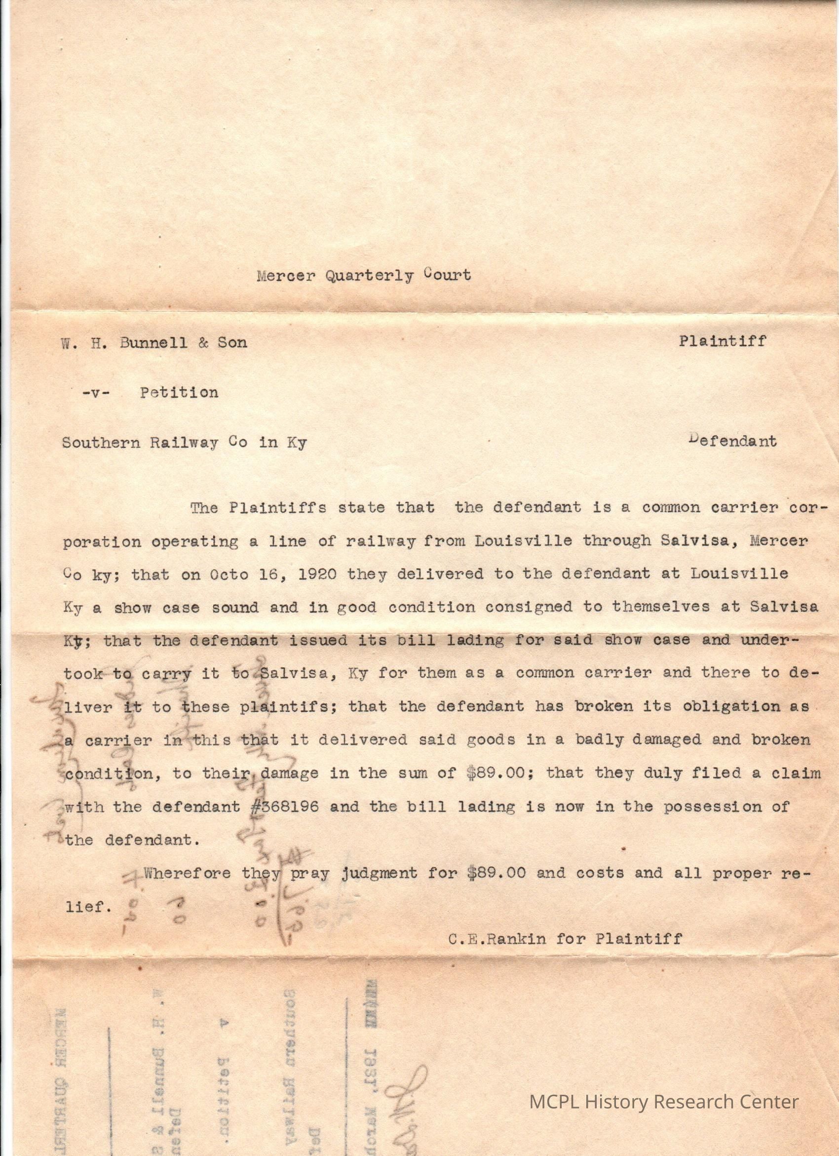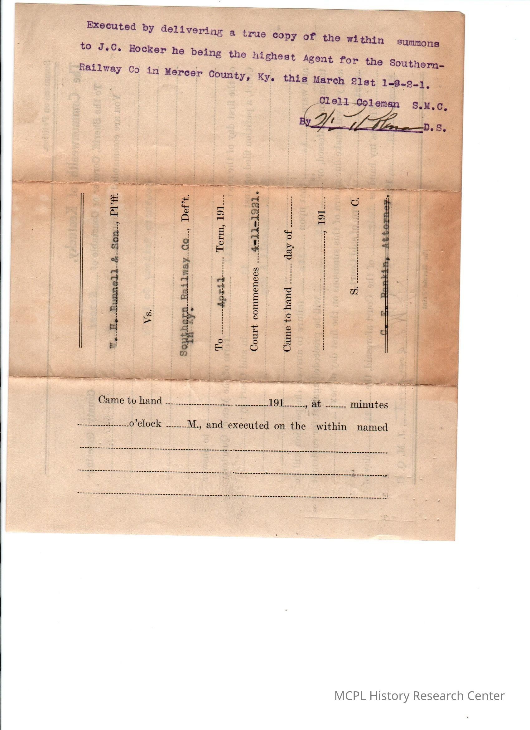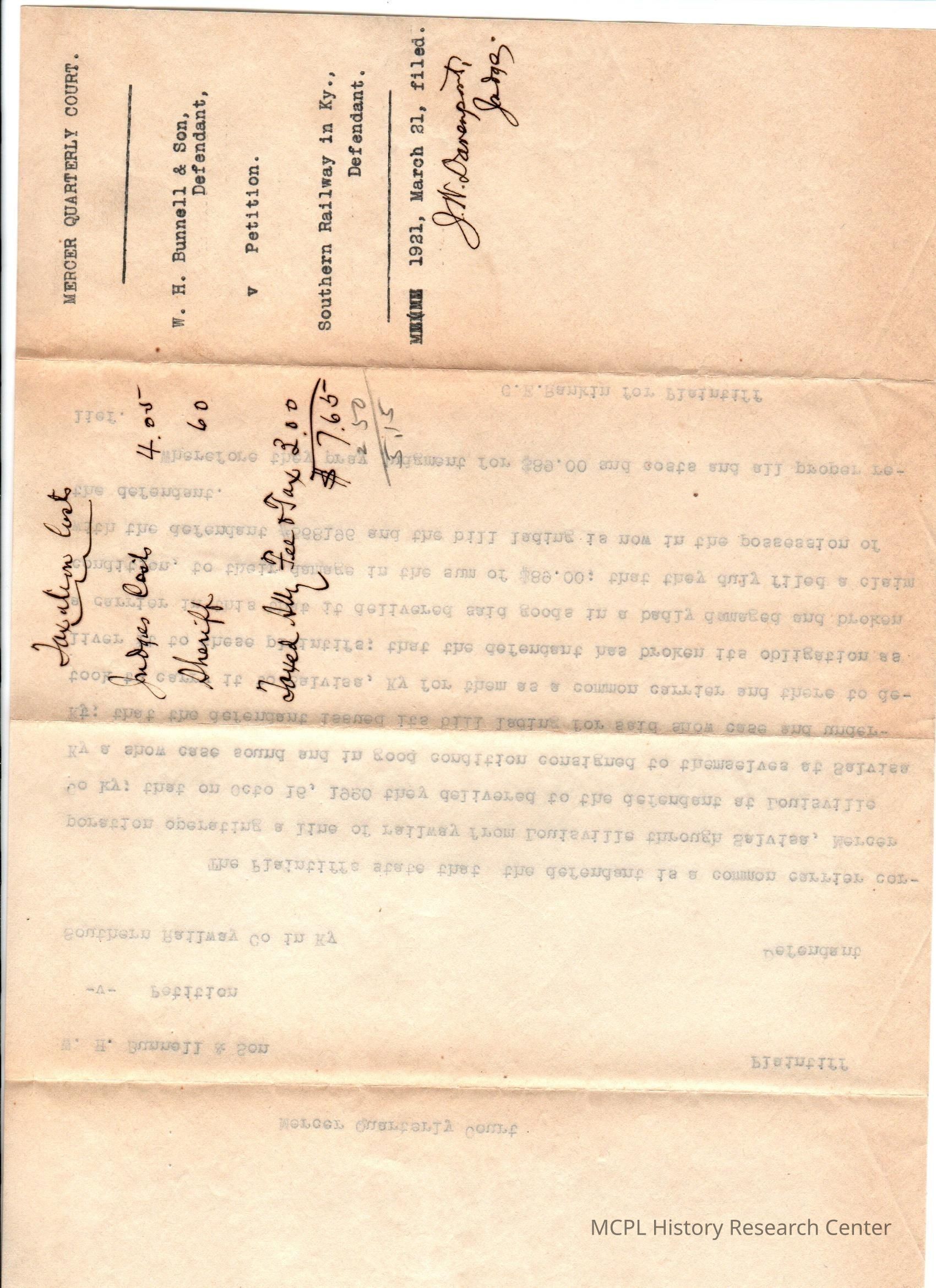 WH Bunnell v Southern Railway Co