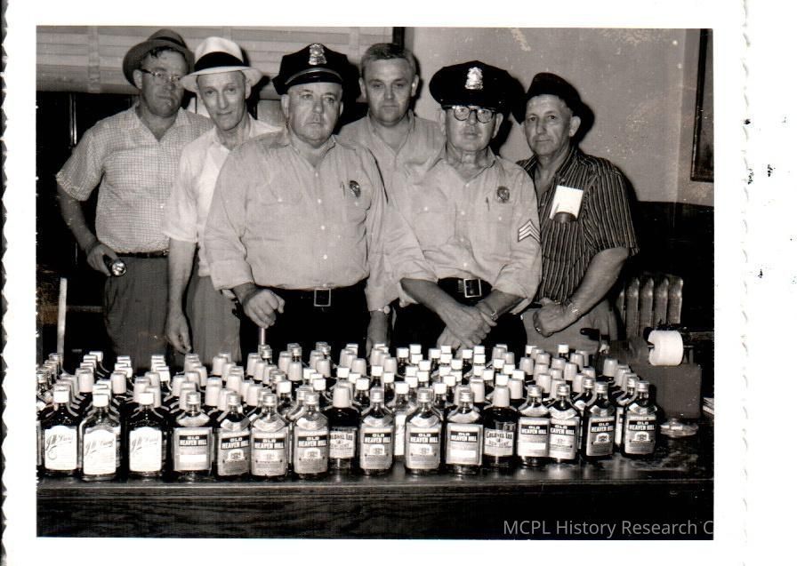 Pictured (l to r) on the front row are Officer Johnny Bottoms and Cecil Robinson. The back row has Deputy Sheriffs Miller Dean and Fred Royalty, patrolman Pearson Springate, and deputy Kenneth Hourigan.Collection