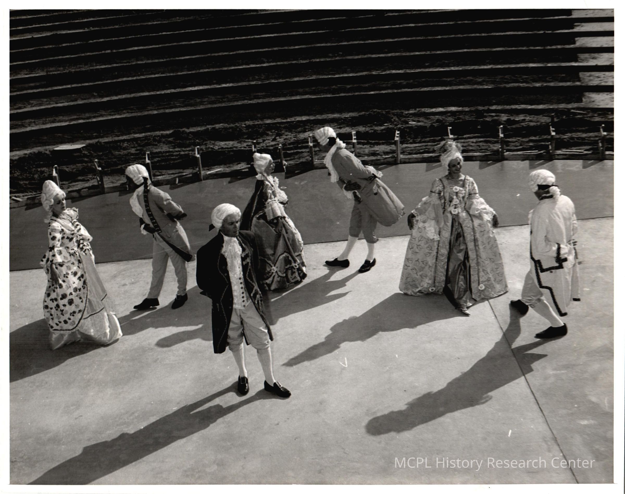 The stately décor and formal minuet of a Colonial Williamsburg dance strikes a harsh contrast with the life of the pioneer in "Home is the Hunter".Collection