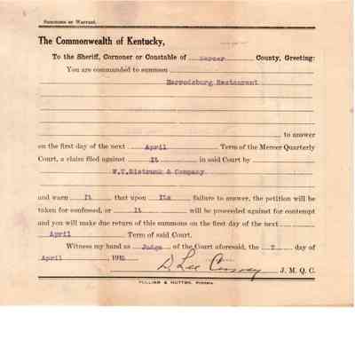WT Sistrunk v Harrodsburg Restaurant