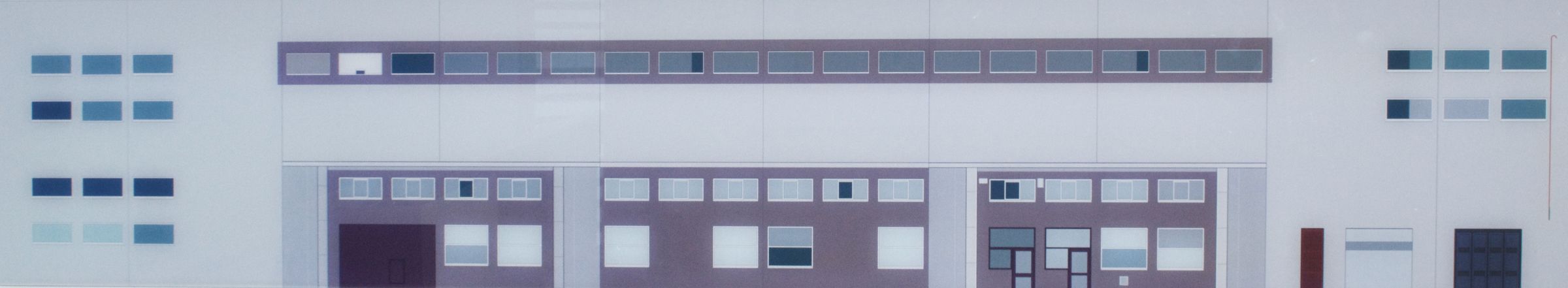 Galvin digital prints are created using photographs of buildings and spaces within different cities. He then uses graphic editing software to outline these forms and translate the images into two-dimensional grids of repeating shapes and patterns that have little resemblance to the original form and instead appear like urban grid plans. Galvin creates a visual language of urban infrastructure and architecture that brings attention to the impacts of urban sprawl on the natural environment and the socio-economic landscape of the city.Artwork Details