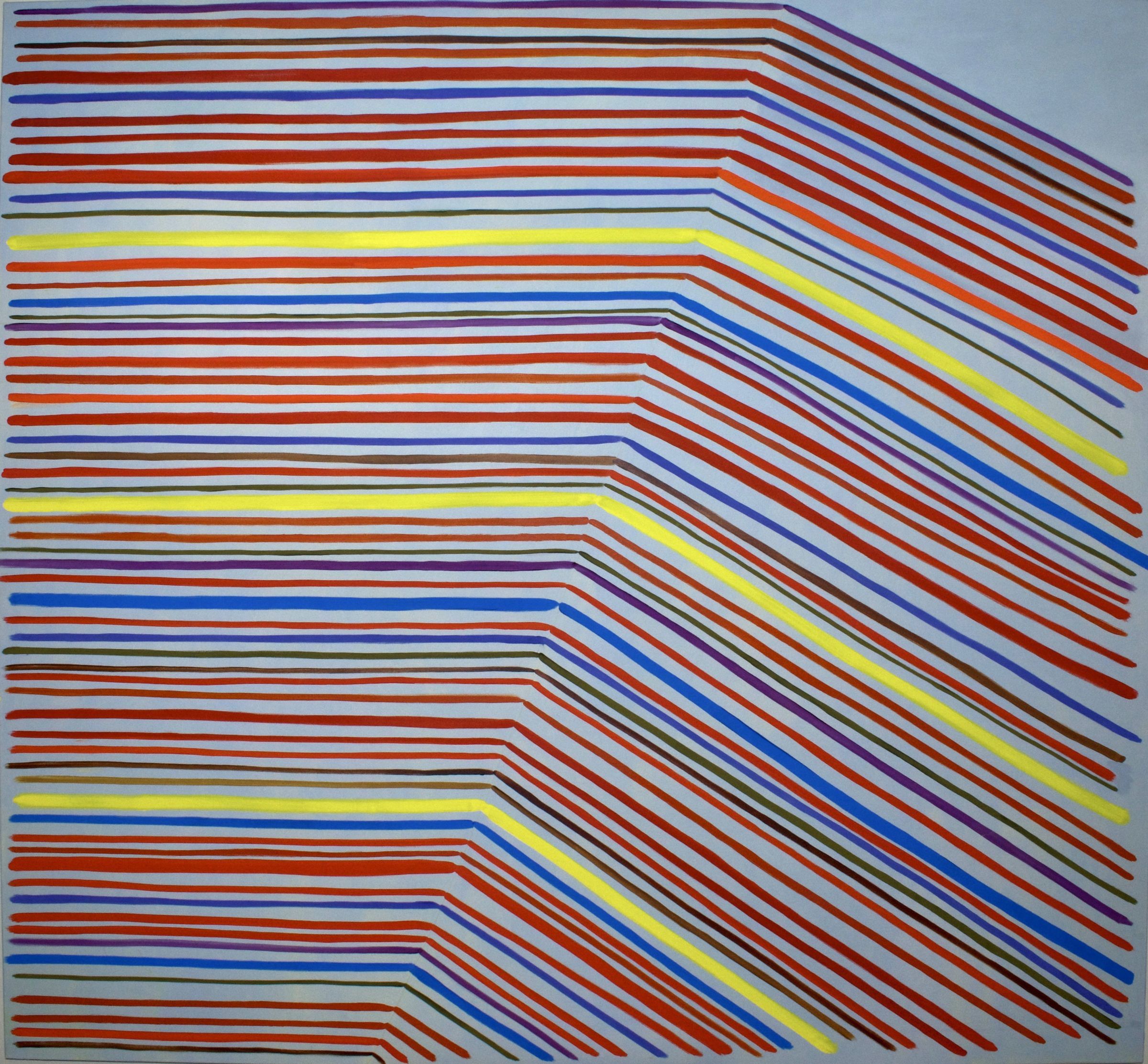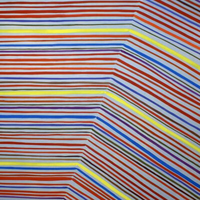 Elizabeth McIntosh’s (b.1967, Simcoe, Ontario) paintings are reactionary. They begin without a plan. Once the artist makes a gesture on the canvas, the next one is created in response to the first. From there, any compositional addition, such as a successive brushstroke or a colour choice, becomes part of a visual conversation between the artist of the past and the artist at present. If a previous creative decision does not appeal to her in the present, McIntosh replies by painting over it or adding something new to fix it. There is no going back, only moving forward. Her process turns the act of painting into a thought that gets carried away. The paintings are not improvised or thought out, rather they represent a mind that wanders during the creative process.