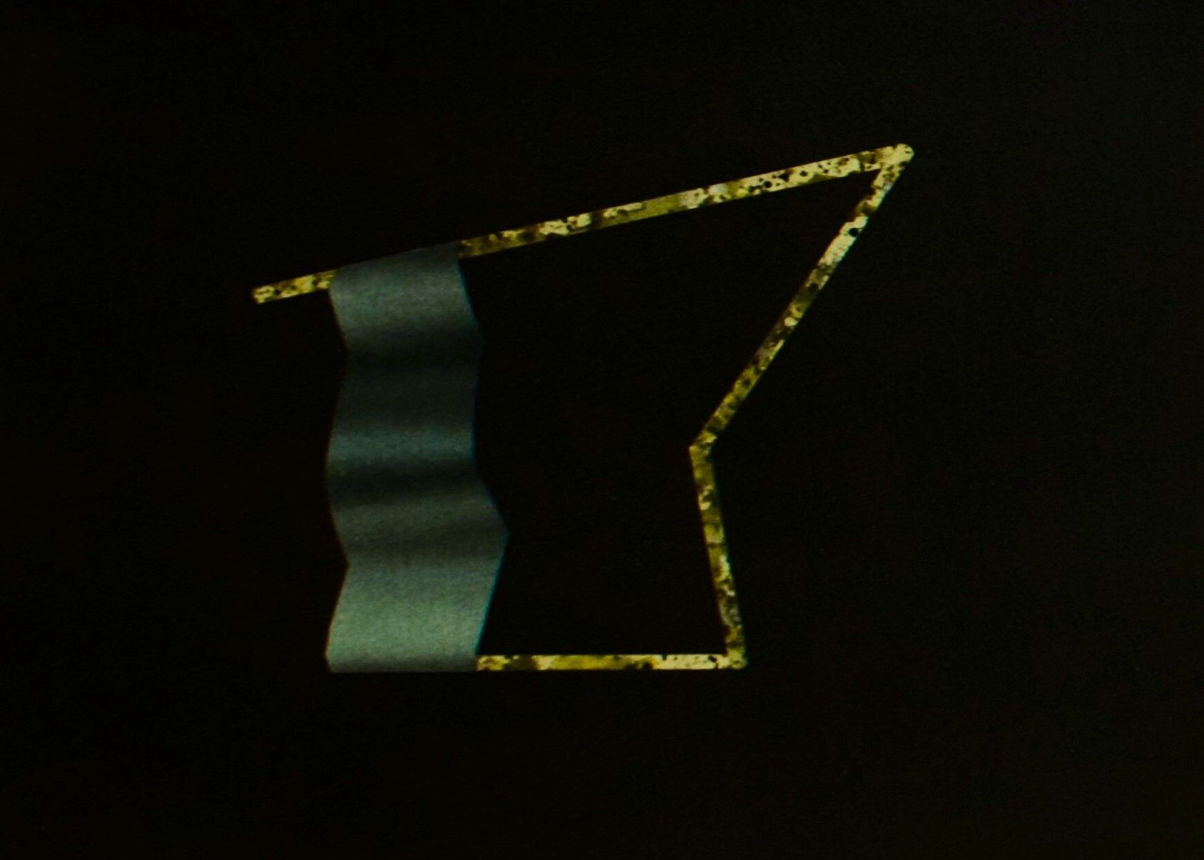 New Line of Gravity (2014) are a series of ink drawing collages. Using both light and shape, Rochon suggests dimensionality and movement. The flowing sheet-like forms appear moulded and transformed by the rigid yellow lines that alter the flow of gravity in the picture plane. Following in pursuit of her investigations into architecture and fluid forms, the shapes are suspended in a boundless void. We are given no indications or references to their scale or proportions, or the source point of the lighting. Instead, all is left ambiguous and uneven.