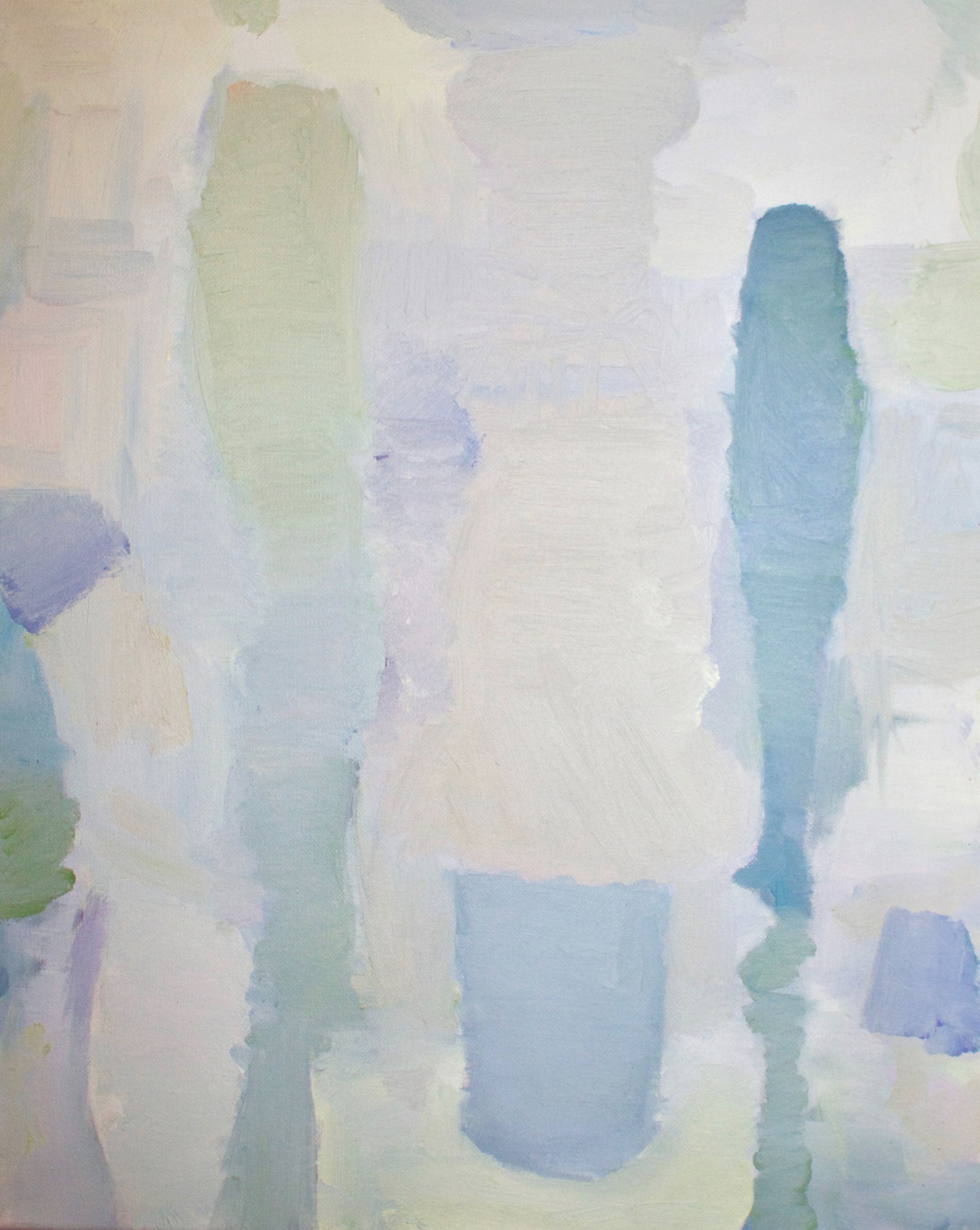 Du Printemps (2015), Winter Flower (2015), and The Three Sisters (2015) all depict impressionist and abstract landscapes in muted colours. The artist's hand is visible as each brushstroke creates hazy forms of flowers and trees. The paintings possess a meditative quality and effortlessness. They invite the viewer to stop and be present in the act of looking. In their original exhibition, the artist included notes to remove any ambiguity.