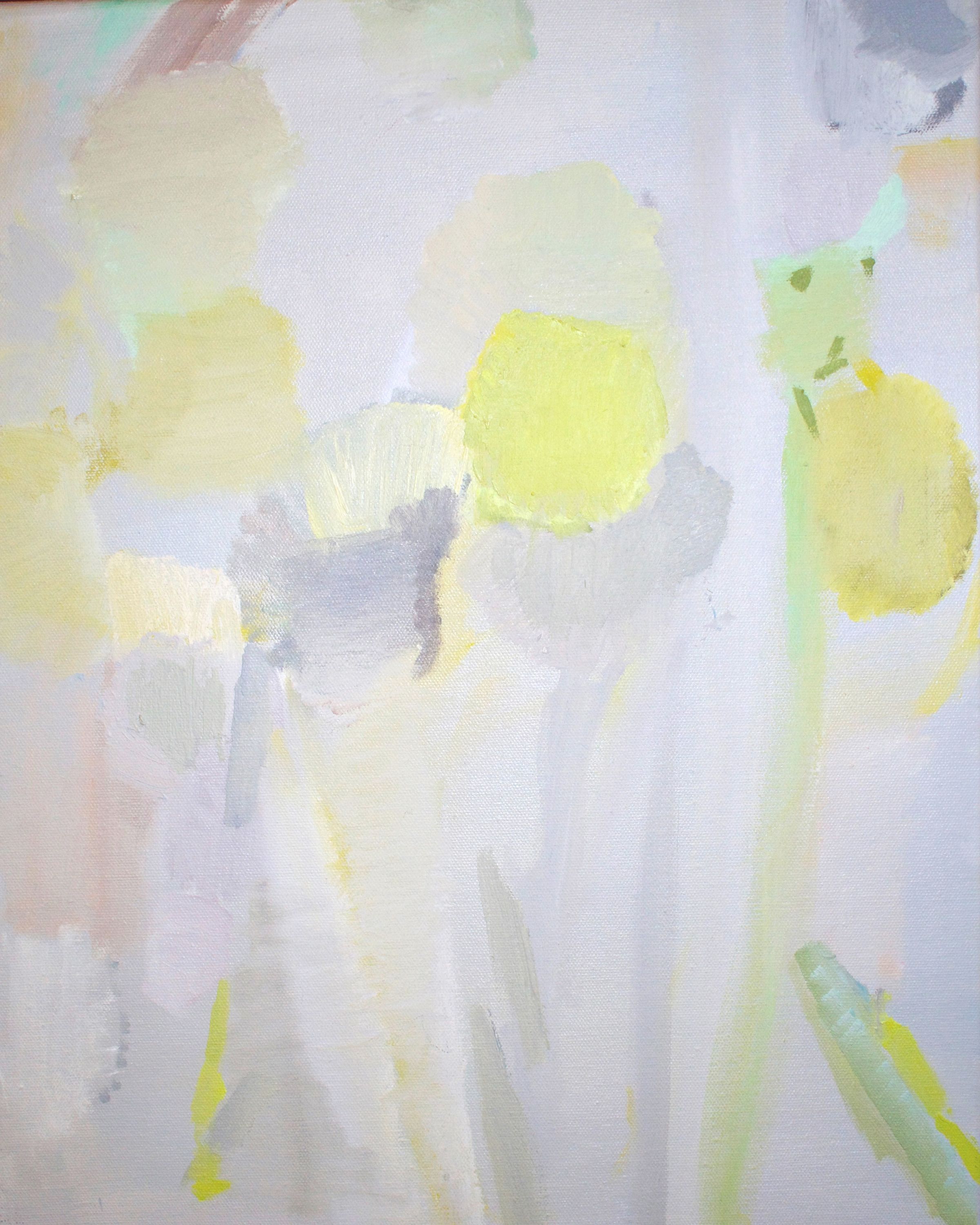 Du Printemps (2015), Winter Flower (2015), and The Three Sisters (2015) all depict impressionist and abstract landscapes in muted colours. The artist's hand is visible as each brushstroke creates hazy forms of flowers and trees. The paintings possess a meditative quality and effortlessness. They invite the viewer to stop and be present in the act of looking. In their original exhibition, the artist included notes to remove any ambiguity.