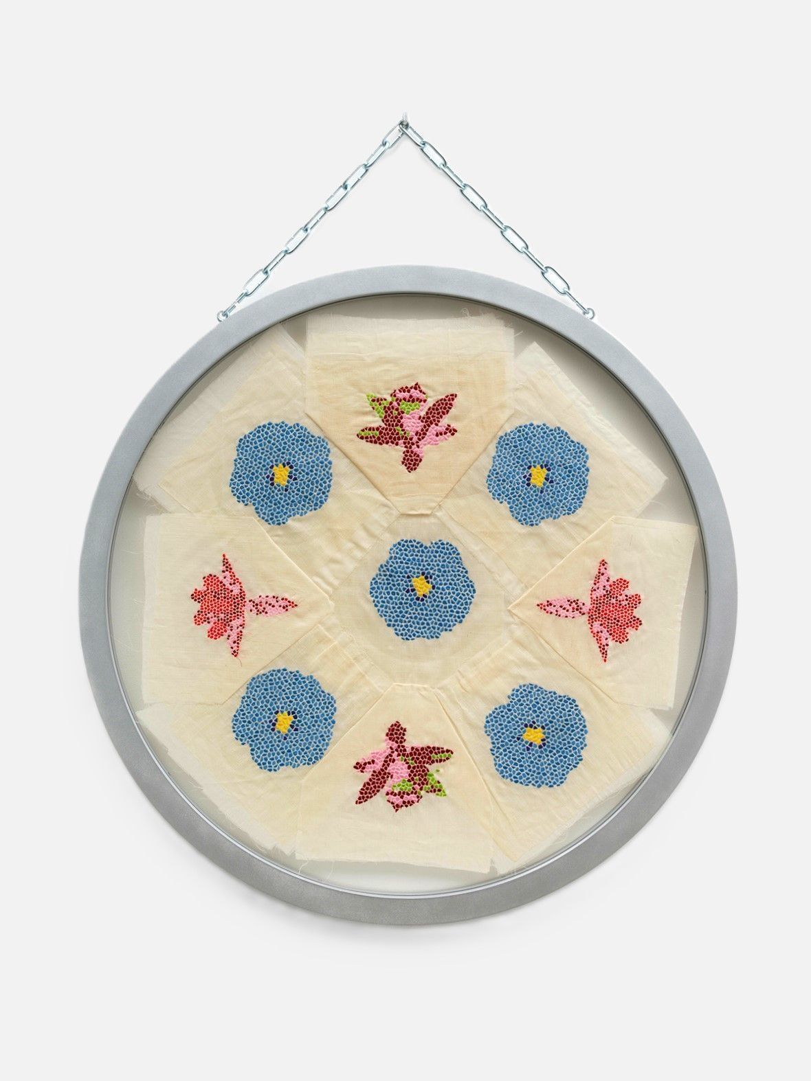 Accompanying the film are textile works crafted from pineapple fiber, a material introduced to the Philippines by the Spanish. These embroidered textiles reference the Manila shawl and the colonial past, while also celebrating the natural world. Each framed "bouquet" is named after a port city on the Spanish trade routes and depict images flowers from trade goods such as banana, cacao and coffee plants imported by the Spanish.Artwork Details