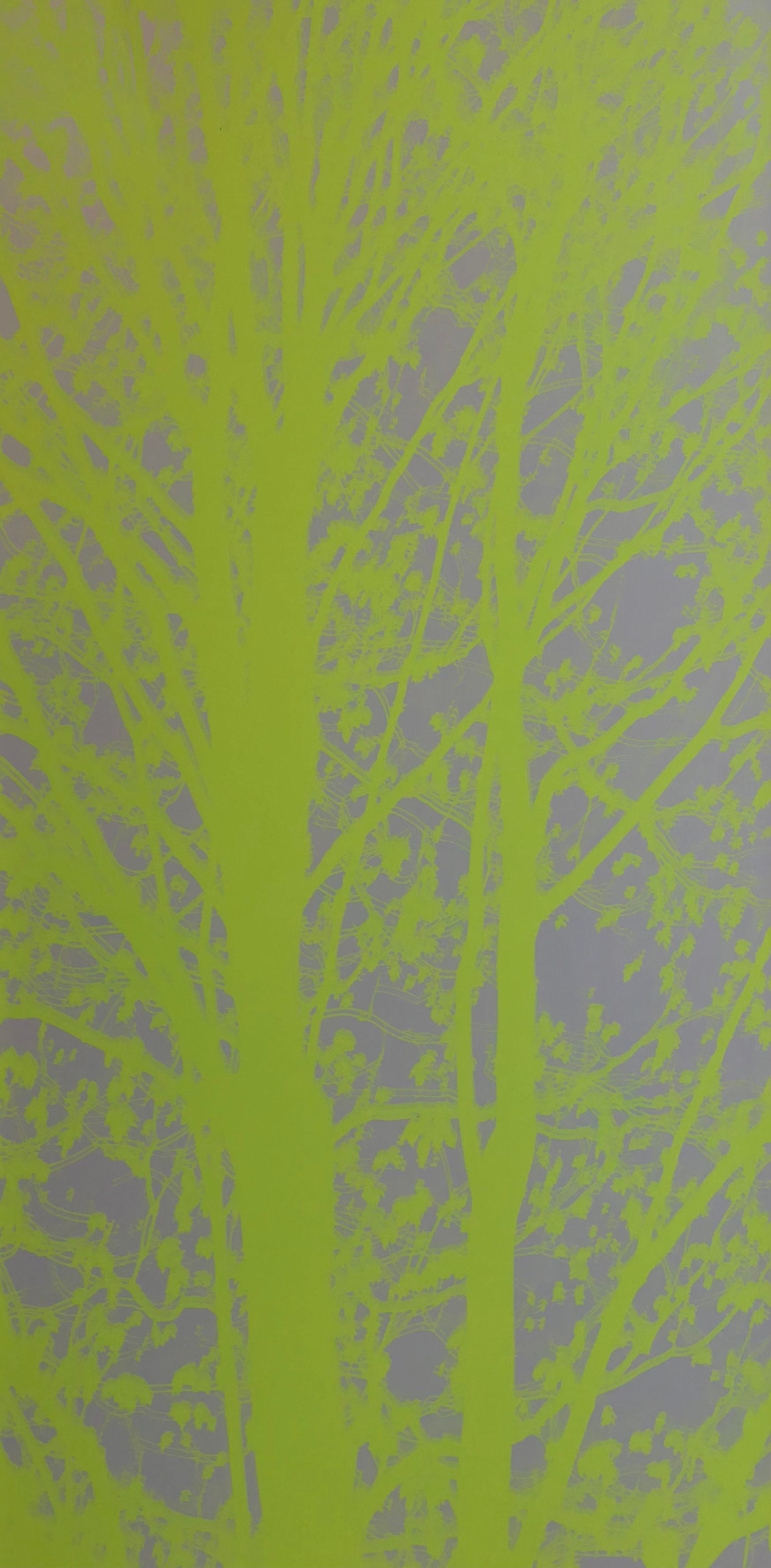 Thorpe's silkscreen prints on paper draw their imagery from photos of gardens and landscapes captured during his time in Toronto, such as Edwards Gardens. Although the subject matter is simple and repetitive, each print is unique and calculated. The artist makes multiple copies of the same image using different colours each time, experimenting with the positive and negative to discover what details emerge and what details are lost between the successive prints. Thorpe’s works play with how both light and colour are perceived. Ambient lighting and surrounding wall colours in the spaces where the artworks are installed affect how they are viewed and experienced.