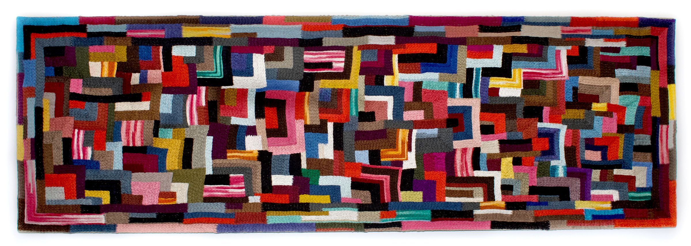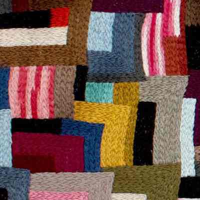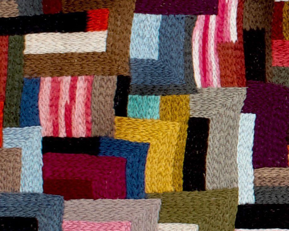 Wade demonstrates a persistent interest in following in the traditions that have been passed down from generation to generation. Growing up surrounded by her grandmother and great-grandmother doing crafts with women in the church basement, the artist sees her works as a way of connecting with her heritage. Breathe (2022) draws inspiration from the traditions of Black Southern quilting, such the Gee’s Bend quilts of southern Alabama, and the complex patterns found Indigenous and African textiles.Artwork Details
