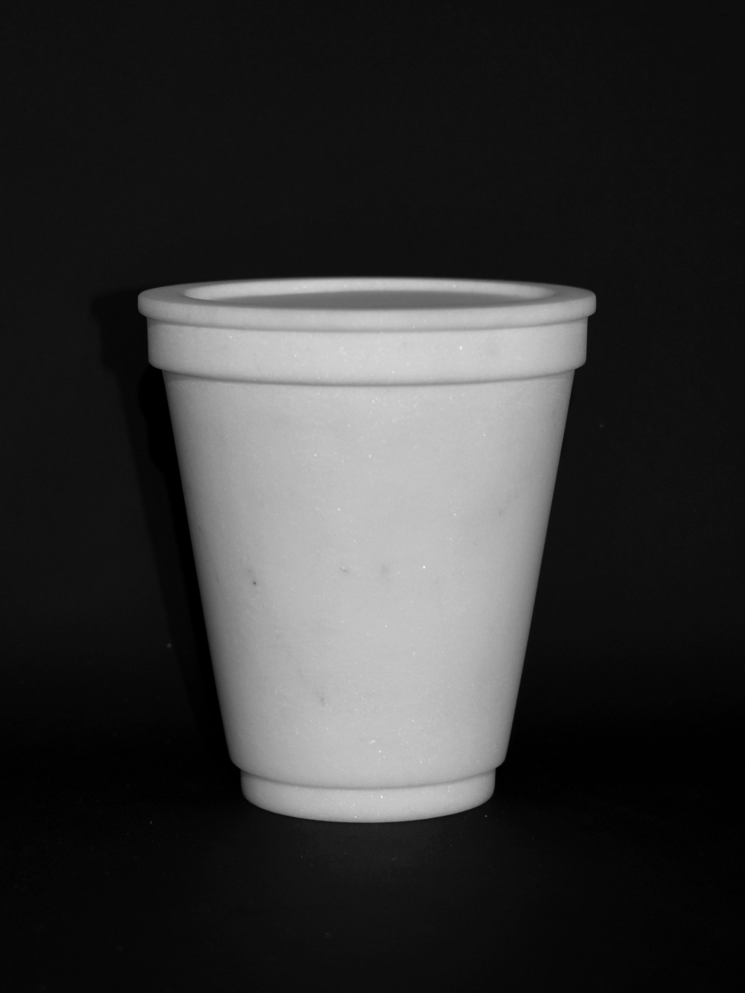 For over thirty years, Carl has been crafting small and large-scale sculptures from a wide variety of materials ranging from cardboard and marble to most recently, Venetian blinds. The notions of craft and labour have been at the root of his studio practice and have set the conceptual framework for his work that ranges from powerful and ironic critiques of globalization and consumerism to celebrations of early and mid-20th century modern sculpture. Carl's marble sculptures often take the form of everyday mass-produced objects from bleach bottles to coffee cups that are carved without any semblance of the artist's hand. His precision to detail transforms the cheap familiar object into stone monuments of contemporary material culture.