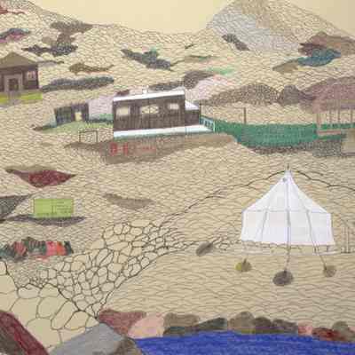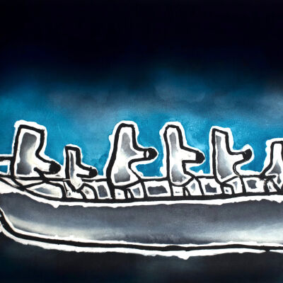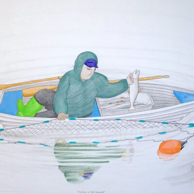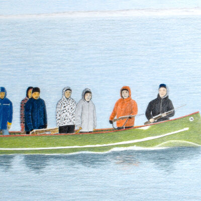 Three Inuit are camping near the East side of Baker Lake to camp for the summer in July