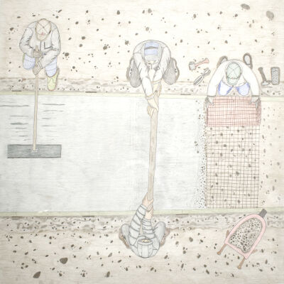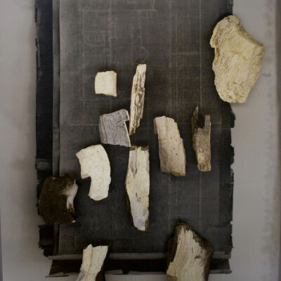 Broken Ceramics and Wood on Blue (Abundance, Archaeology, Desire, Distribution, Economy, Excess, Failure, Frustration, History, Isolation, Longevity, Luxury, Memory, Precarity, Production, Success, Uncertainty)
