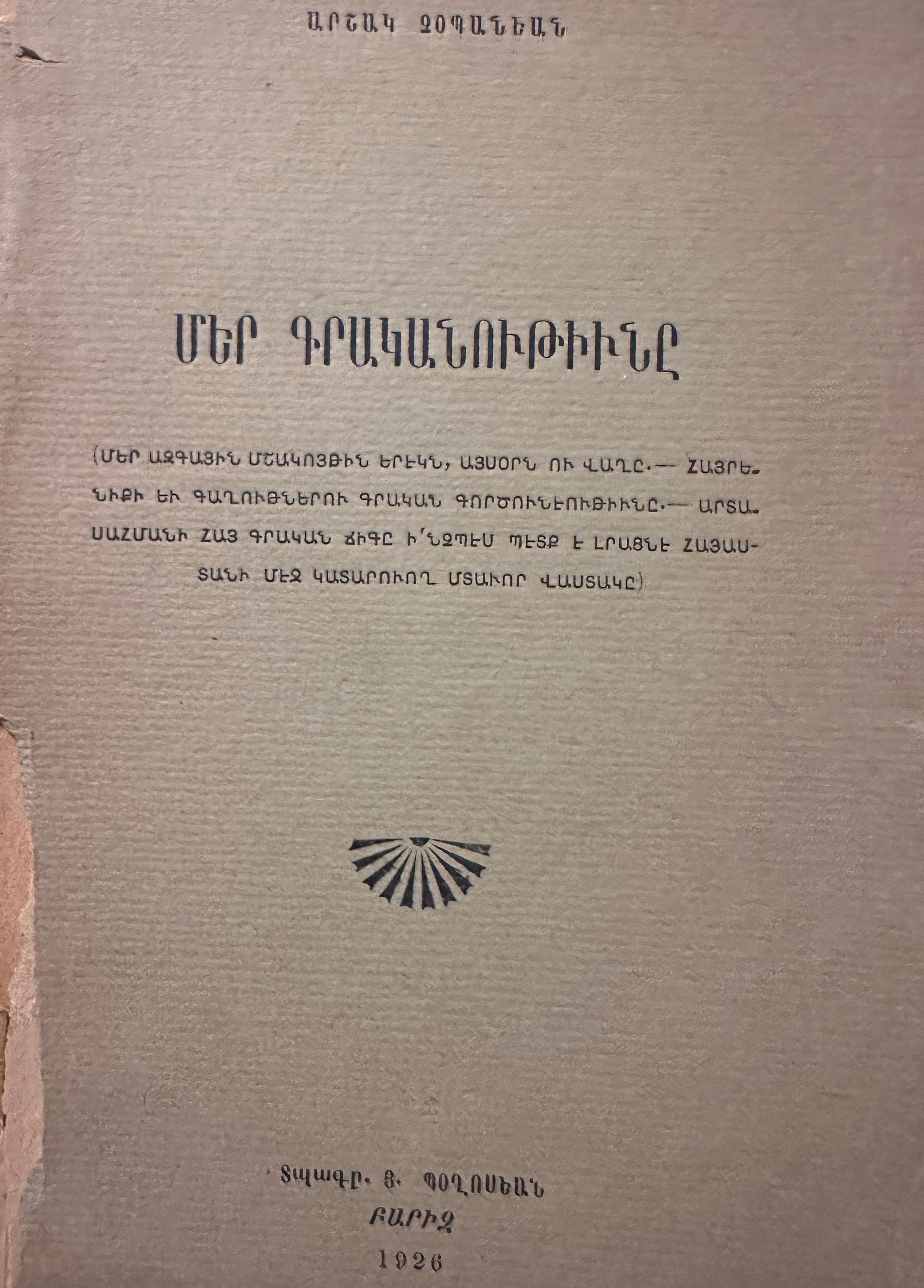 Mer Kraganutiune (Arshag Chobanian, 1926)Secondary Title