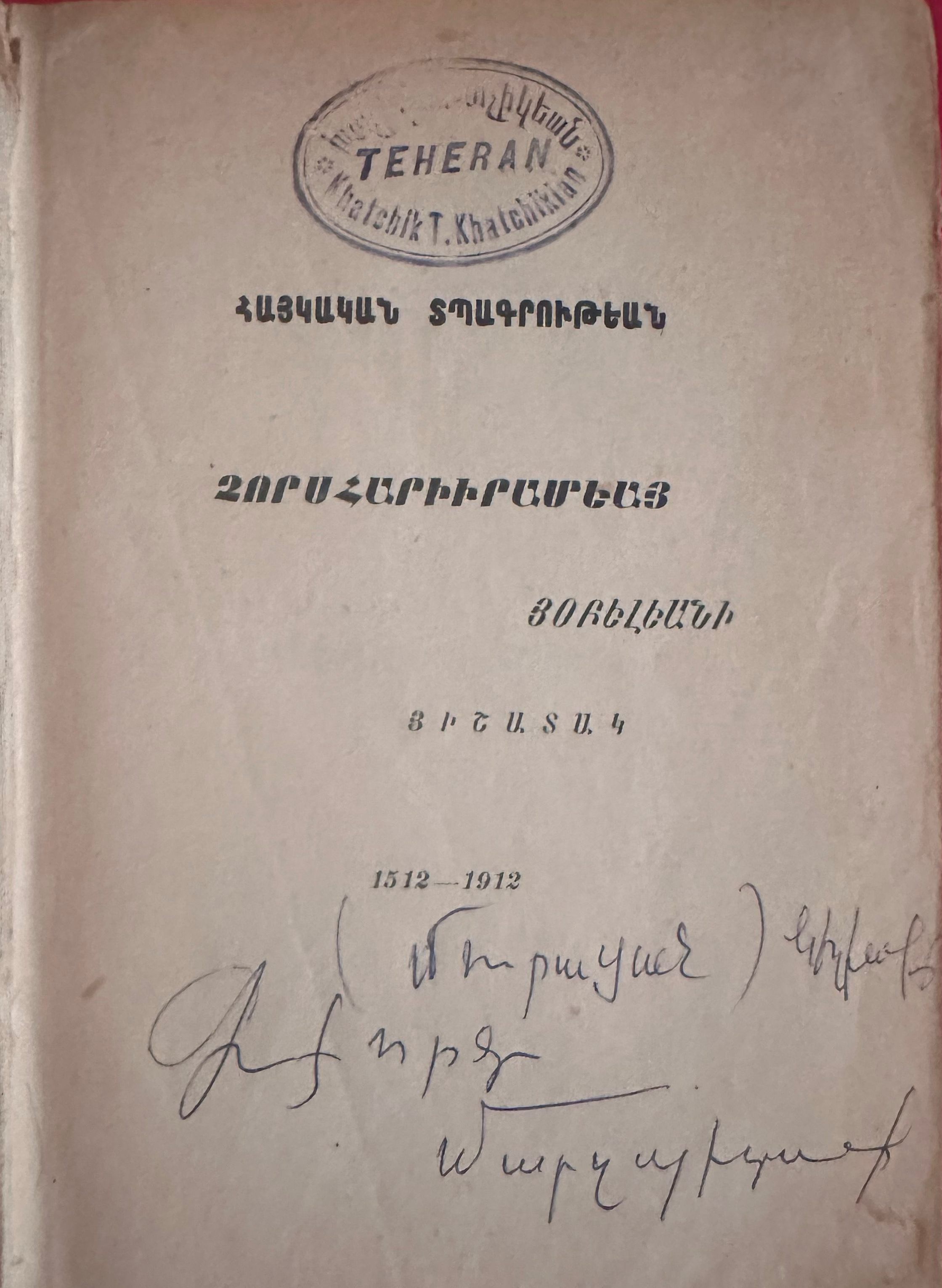 A book made in honor of the four-hundredth anniversary of Armenian printing.Inscription/Signature/Marks