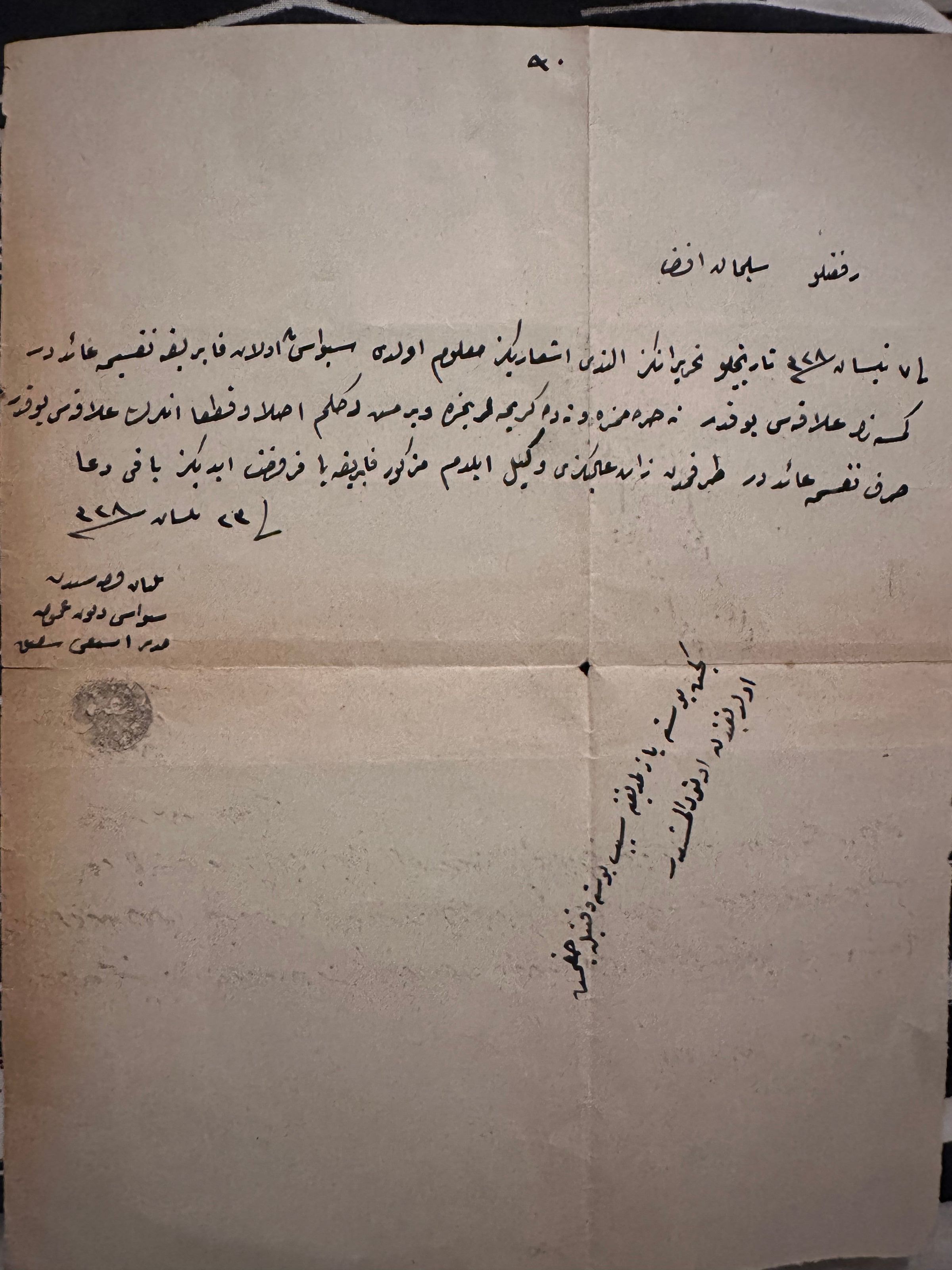 A letter sent to Süleyman Efendi, sealed by former Sivas Public Debt Administration Director Şefik, regarding the appointment of Süleyman Efendi as a representative for the sale of his factory in Sivas.