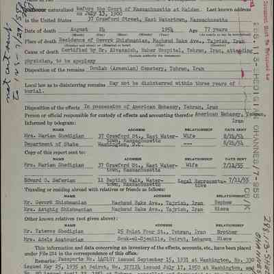 Although Hovhannes’s descendants in the United States can be traced through family records, they are not his direct blood relatives. One relative, Nadia, recalled that her mother’s sister Mariam was married to Hovhannes. Hovhannes’s father, Harutyun—a teacher—and his brother, Sarkis, were killed during the Armenian Genocide, with Sarkis dying in Aleppo.