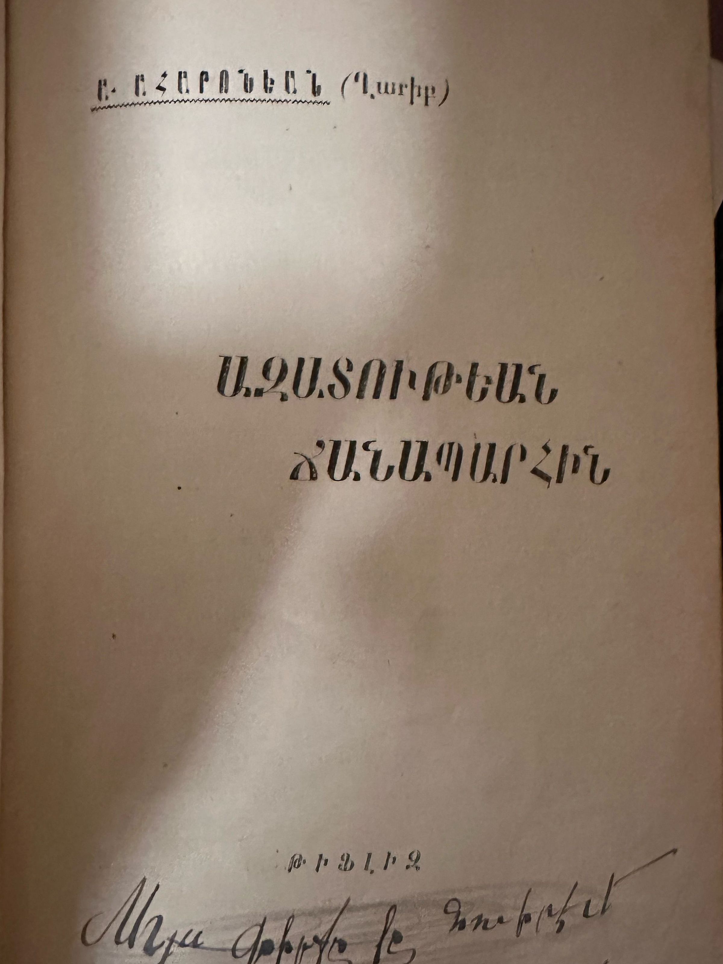 Azadutyan Janabarhin (Avetis Aharonian, 1906)Secondary Title