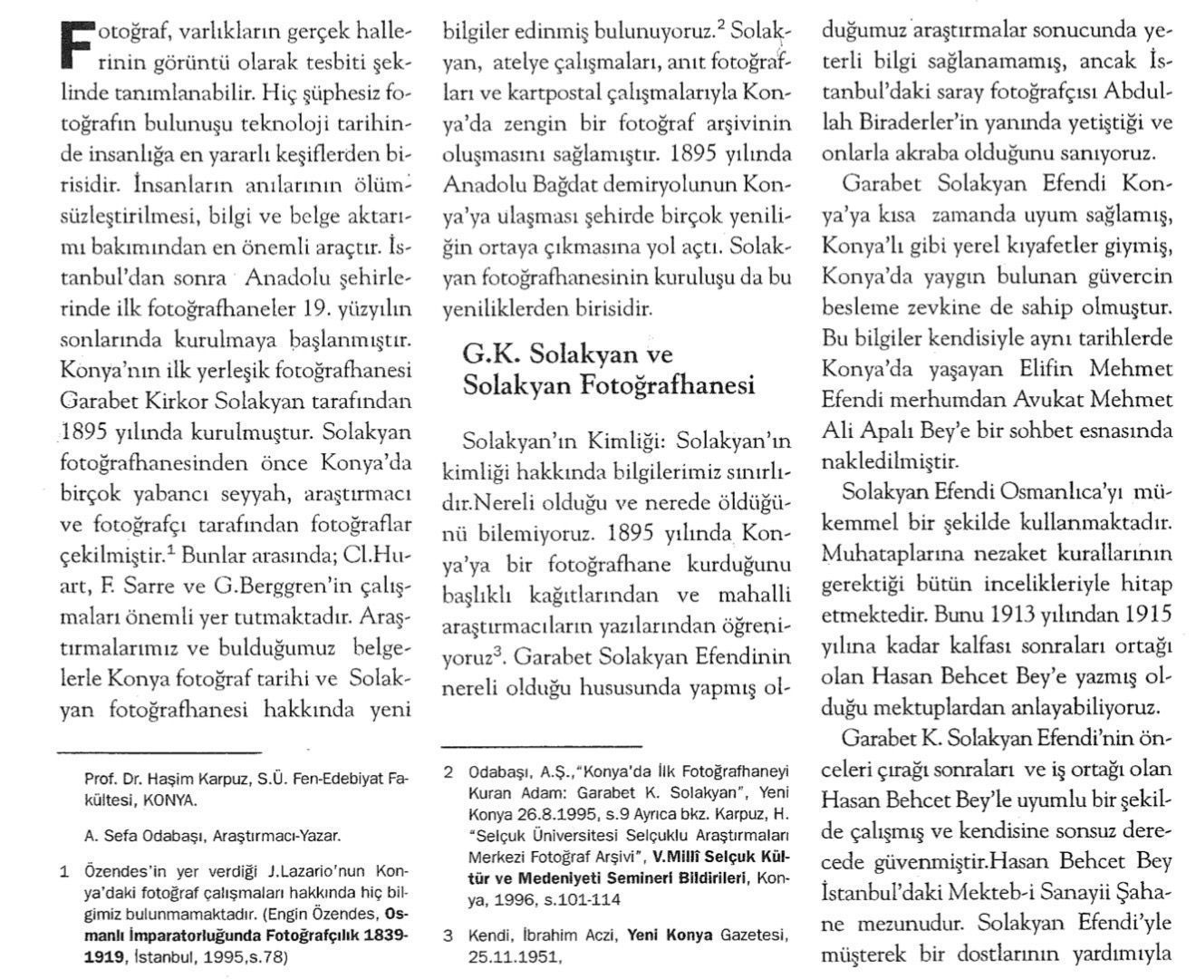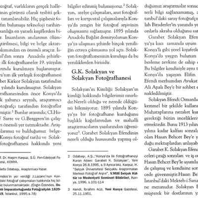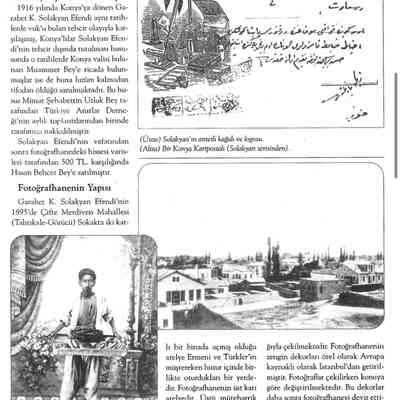 The earliest known permanent studio in Konya was founded in 1895 by Garabet Kirkor Solakyan. Prior to Solakyan’s arrival, the city had been photographed by several foreign travelers and researchers, including Cl. Huart, F. Sarre, and G. Berggren, whose work constitutes an important early visual record of Konya. Documentary evidence uncovered through recent research indicates that Solakyan’s studio, photographic output, and later postcard production contributed substantially to the formation of a visual archive of the city. The opening of the studio coincided with the arrival of the Anatolia–Baghdad Railway in 1895, a development that introduced numerous innovations to Konya.