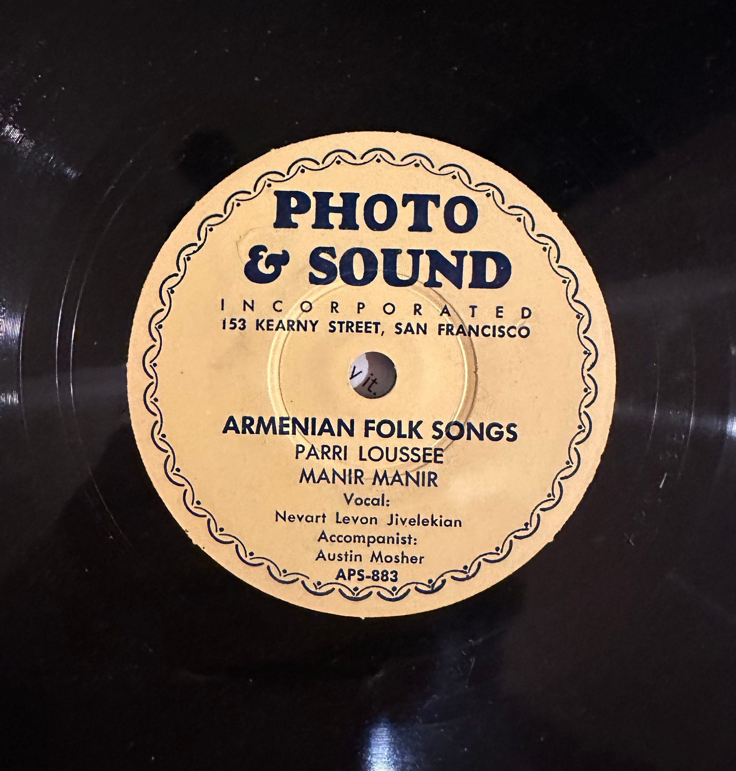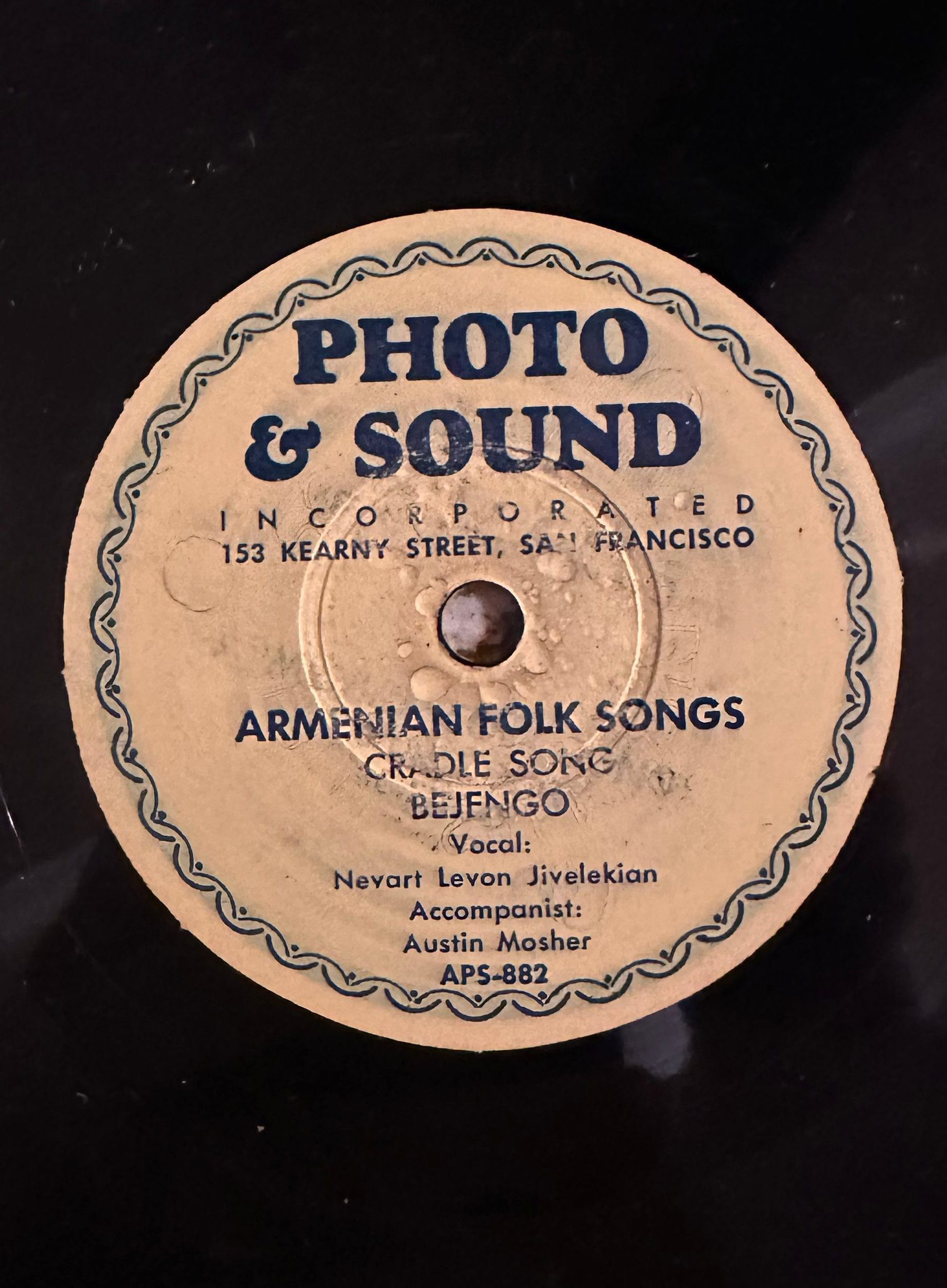 Nevart Shaghoian, later Nevart Levon Jivelekian, was born in Van, Western Armenia in 1894 and immigrated to the U.S. in 1920. By 1922, she had petitioned for naturalization in Boston. She lived in Malden, MA in 1927 and later moved to Watertown with her husband Levon, an automobile dealer, and their two sons. Throughout the 1920s and ’30s, she performed at venues like Symphony Hall and made regular radio appearances in Boston and California. By 1935, she relocated to San Francisco, becoming the choral director of the Armenian National Chorus and performing with the San Francisco Opera. She continued to appear on radio and recorded at least two albums in California. Nevarthe passed away in San Francisco in June 1973, leaving behind a recording that showcases her early talent and connection to composer Grikor Suni.Audio Format