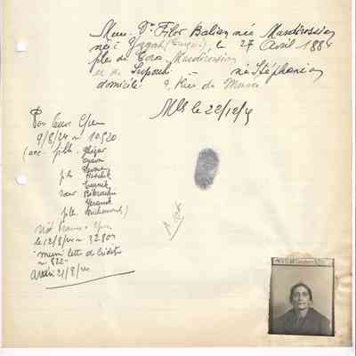 Document regarding Filor Balian, a Turkish citizen of Armenian nationality, residing with their family in Fatih, Çadırcı Ahmet Çelebi neighborhood. It states that, in compliance with the order, they were recorded in the refugee registry book. Dated 1340/1924, with photograph and sealed.General Notes