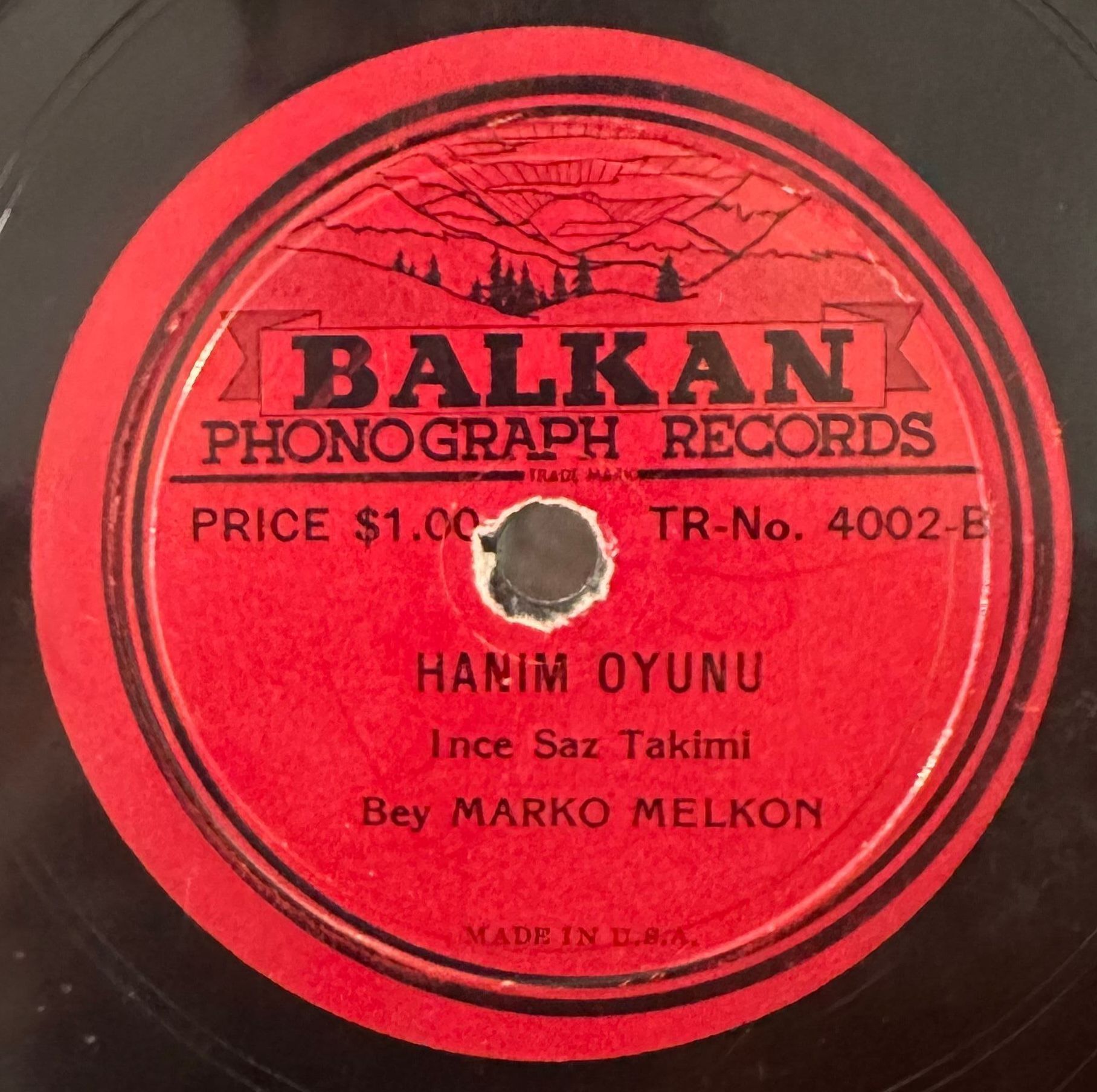 Oud player "Marko" Melkon Alemsherian (1895, Smyrna, Turkey - 1963, New York, U.S.) was a key figure in Middle Eastern and belly dance music in the United States. An Armenian born in Izmir, he settled in America in 1921 after spending time in Greece to avoid Ottoman military service. He primarily sang in Turkish and was also comfortable with Greek. Melkon filed his Declaration of Intent for U.S. citizenship on November 10, 1922, claiming a birth date of May 2, 1894 (later changing it to 1895). He arrived at Ellis Island on February 10, 1920, from Piraeus, Greece. Fleeing Smyrna as a teenager, he worked as a musician in Athens before becoming a professional by his late teens, often performing under the Greek stage name Marko Melkon.
