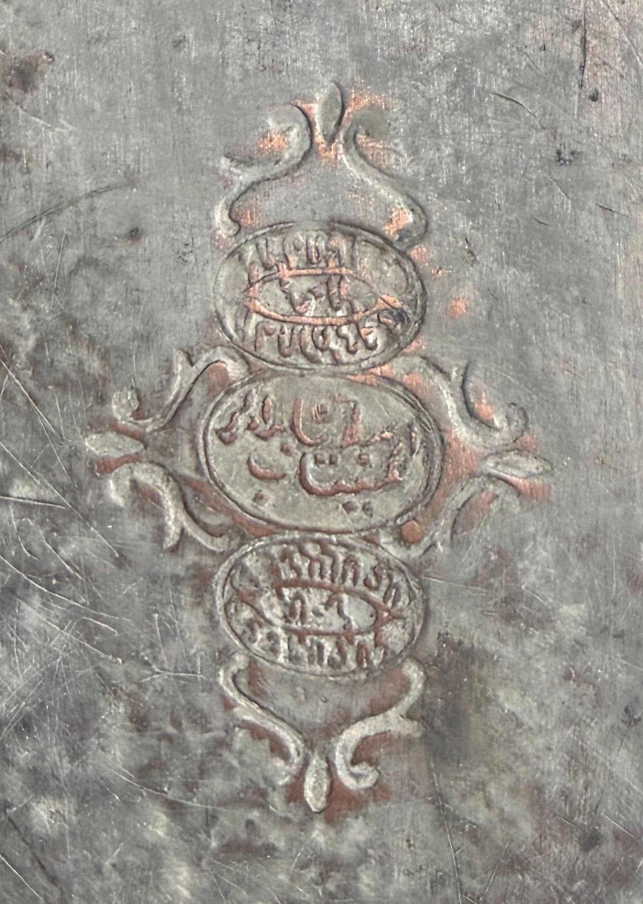 Lidded copper tray made by Garabed Arslanyan of Aintab, bearing the initials Ն.Ա. Garabed was likely a son or relative of Hagop Arslanian, who worked in the Nazar Ağa Han. The Arslanian family originally hailed from Tokat and became one of Aintab’s most prominent Armenian metalworking dynasties.