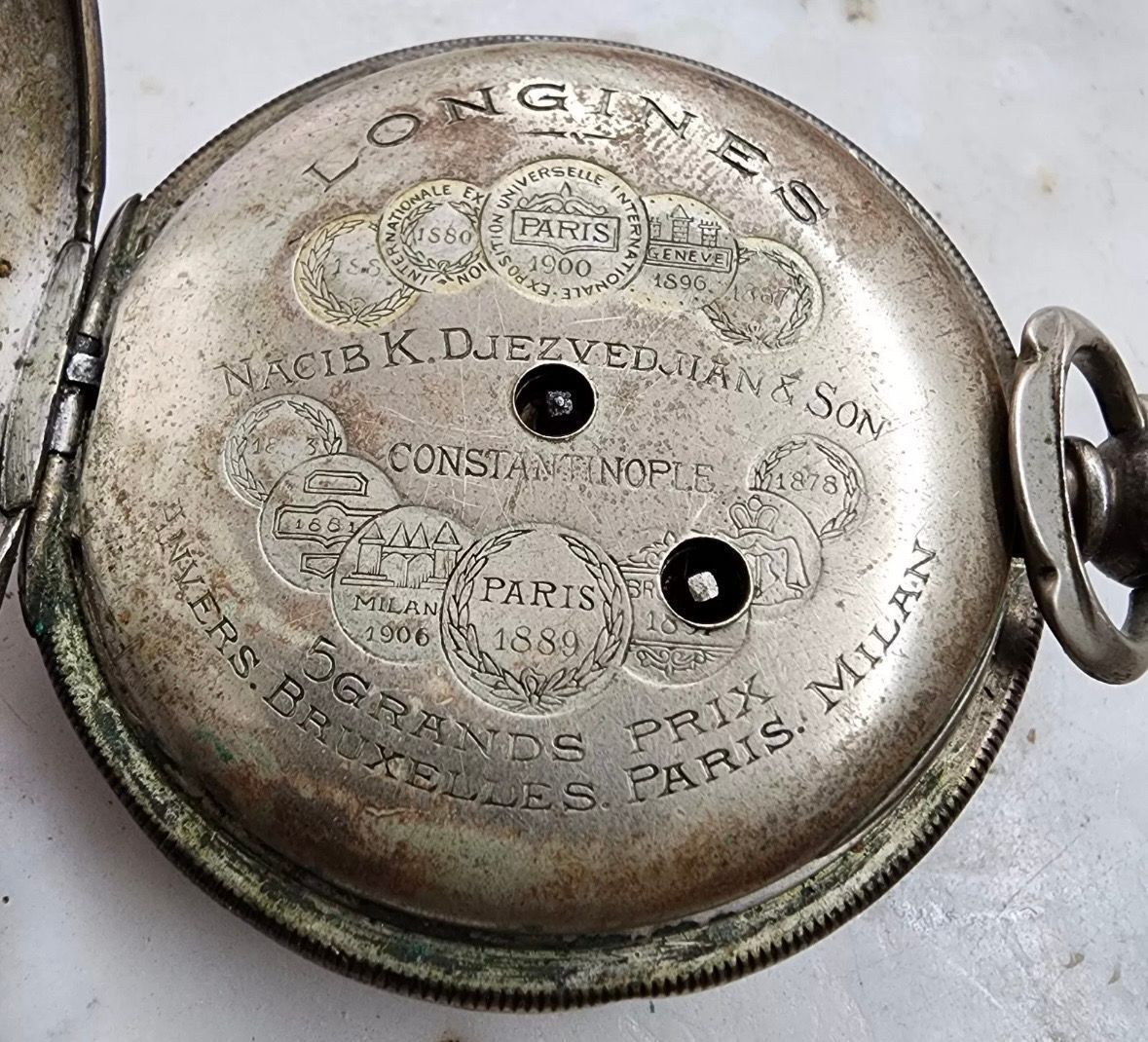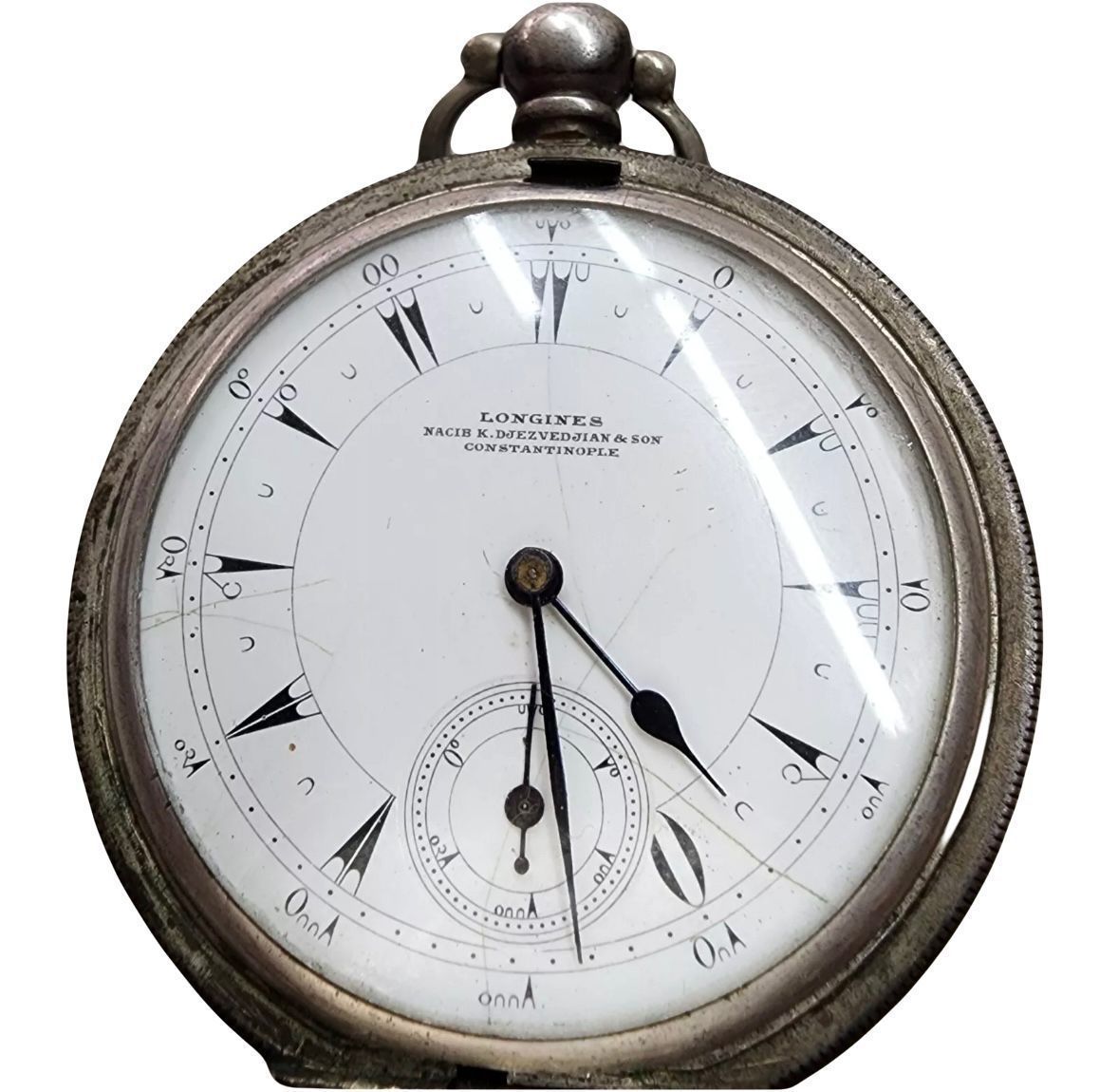 Nacib K. Djezvedjian & Son was a prominent watch retailer based in Constantinople during the late 19th and early 20th centuries. They specialized in distributing high-quality timepieces from esteemed Swiss manufacturers, notably Longines. Their name frequently appears on the dials and movements of watches crafted for the Ottoman market, indicating their role as official retailers. The company has won many medals including five awards from the Grand Prix. The watch has a mechanical (manual) movement and the case is made of silver with a white dial color.Item Type