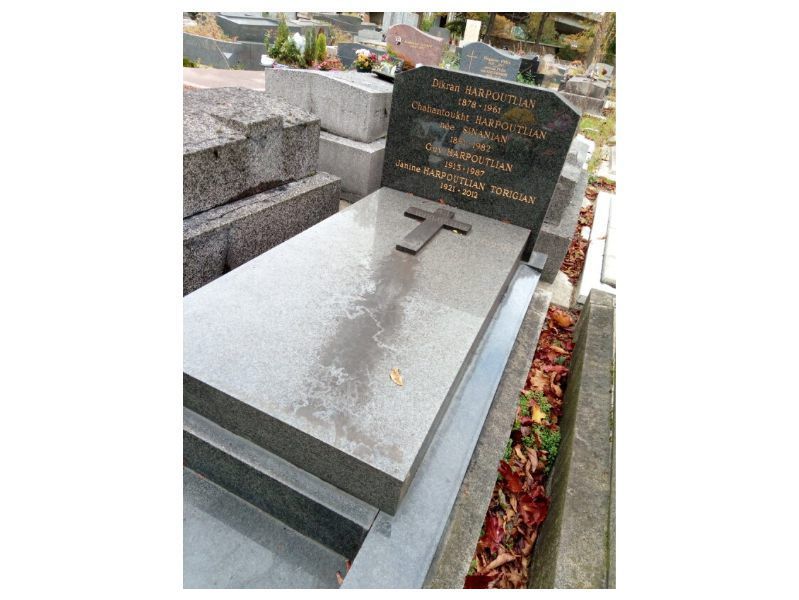 Dikran Harpoutlian remained in France for the rest of his life, passing away in 1961 at the age of 83. While his actual birth year was 1878, his emigration papers list two different dates, including 1873. He was married to Shahandoukht (née Sinanian), who was born in 1891 and lived until 1982. Their son, Garabed (1913–1987), appears to have gone by the name Guy, as inscribed on the family tombstone.Created By