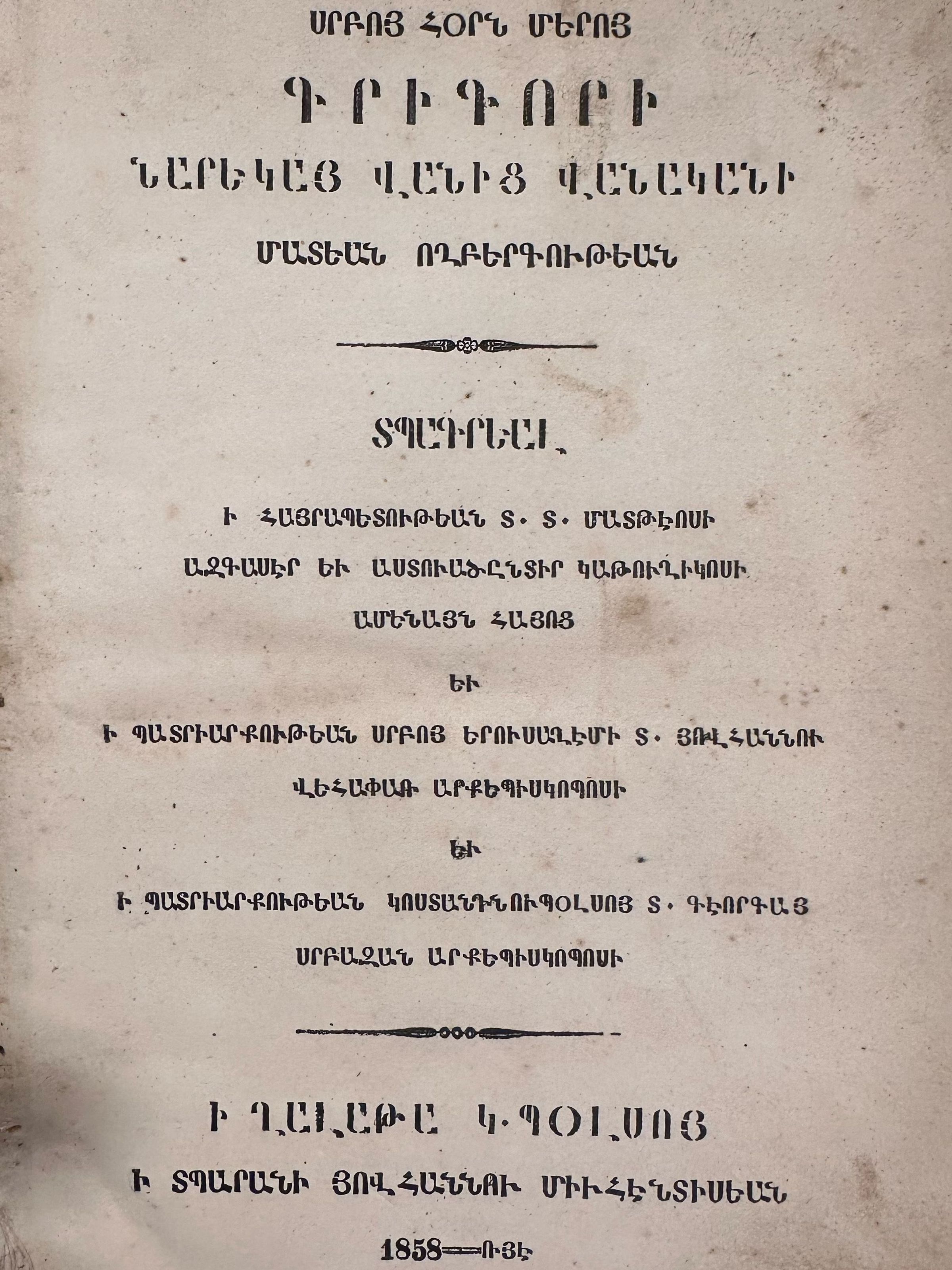 Madyan Voghperkutyun (Krikor Naregatsi, 1858)Secondary Title