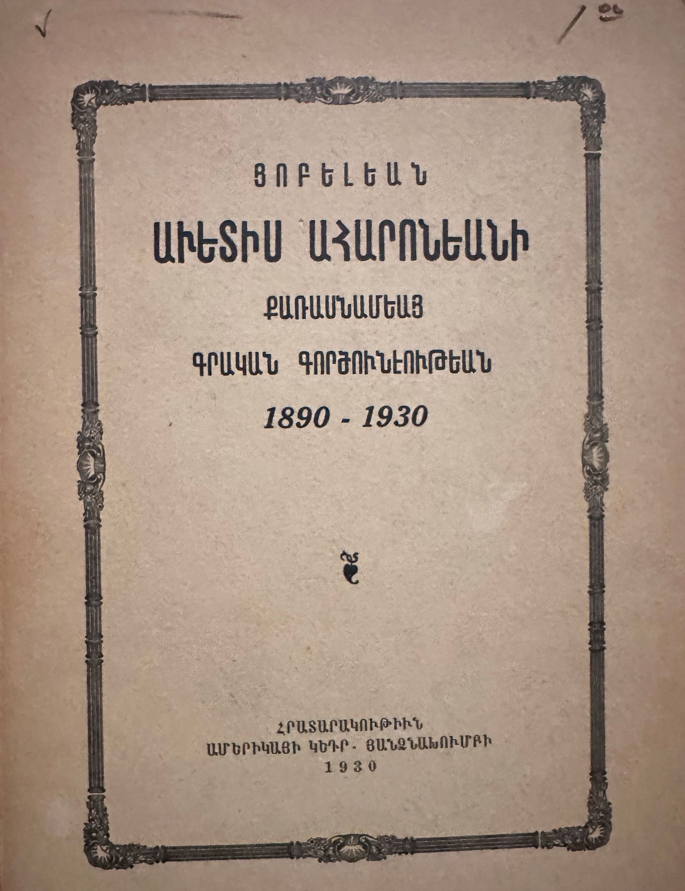 Յոբելեան Աւետիս Ահարոնեանի 40-ամեայ գրական գործունէութեան (1890-1930)Description
