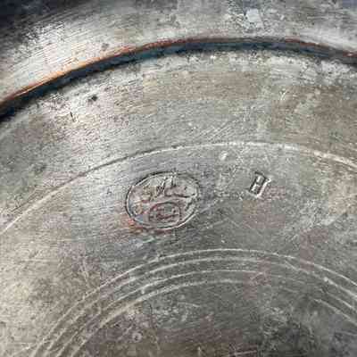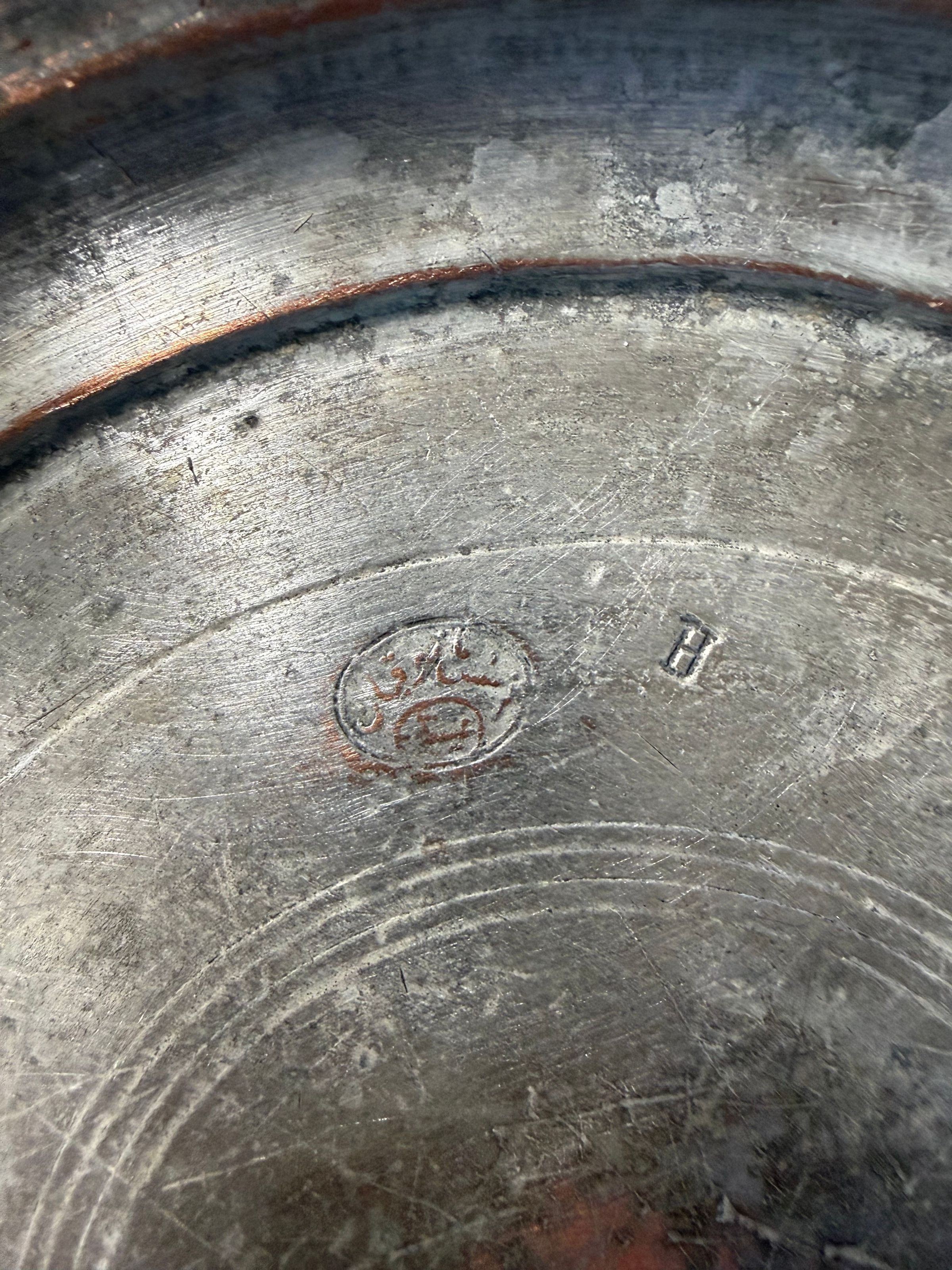 Copper plate inscribed with the name Nerses Manukyan, one of Aintab’s better-known copperware manufacturers. Coated in tin, indicating it was intended for dining use.Category