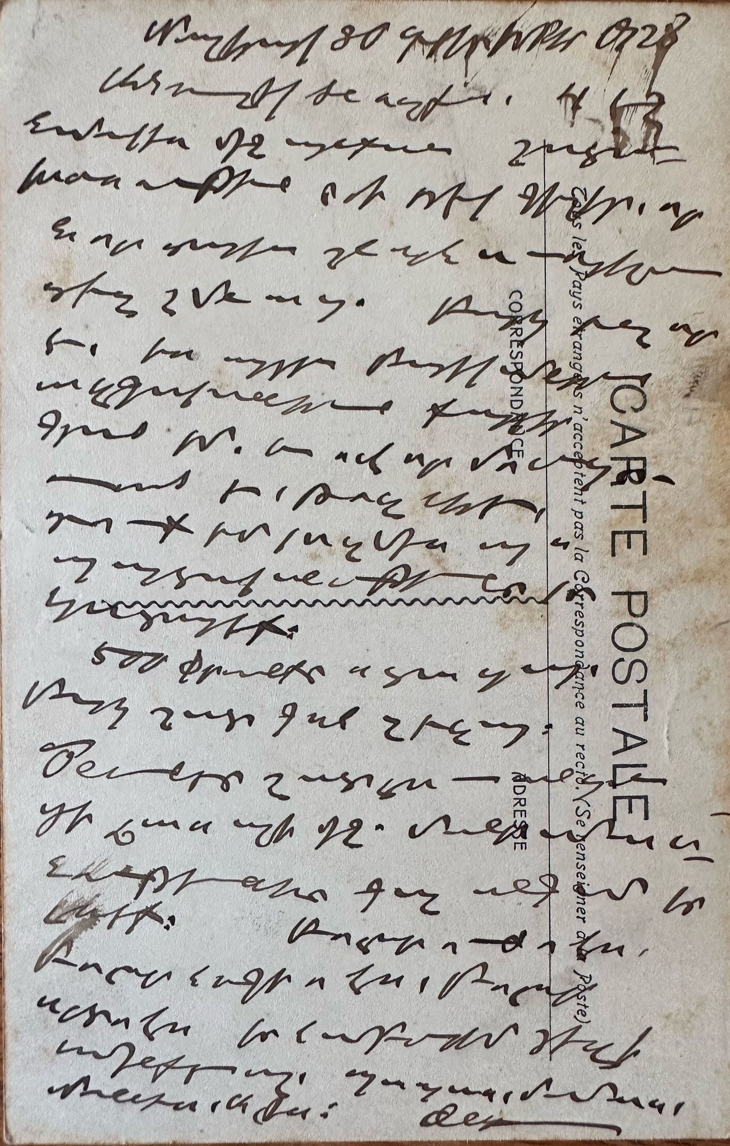 500 ֆրանքը ստացայ բայց շատ քան չի կայ: Ծնունդը շատ լաւ անցուցի Լասալի մէջ: Մանրամասնութիւնները գալ անգամ կը լսէք։ Բոլոր ուժովս, բոլոր հոգիովս եւ բոլոր սրտովս կը համբուրեմ քեզի պապաս, մամաս, մեննիս, ԱլիսRelationships