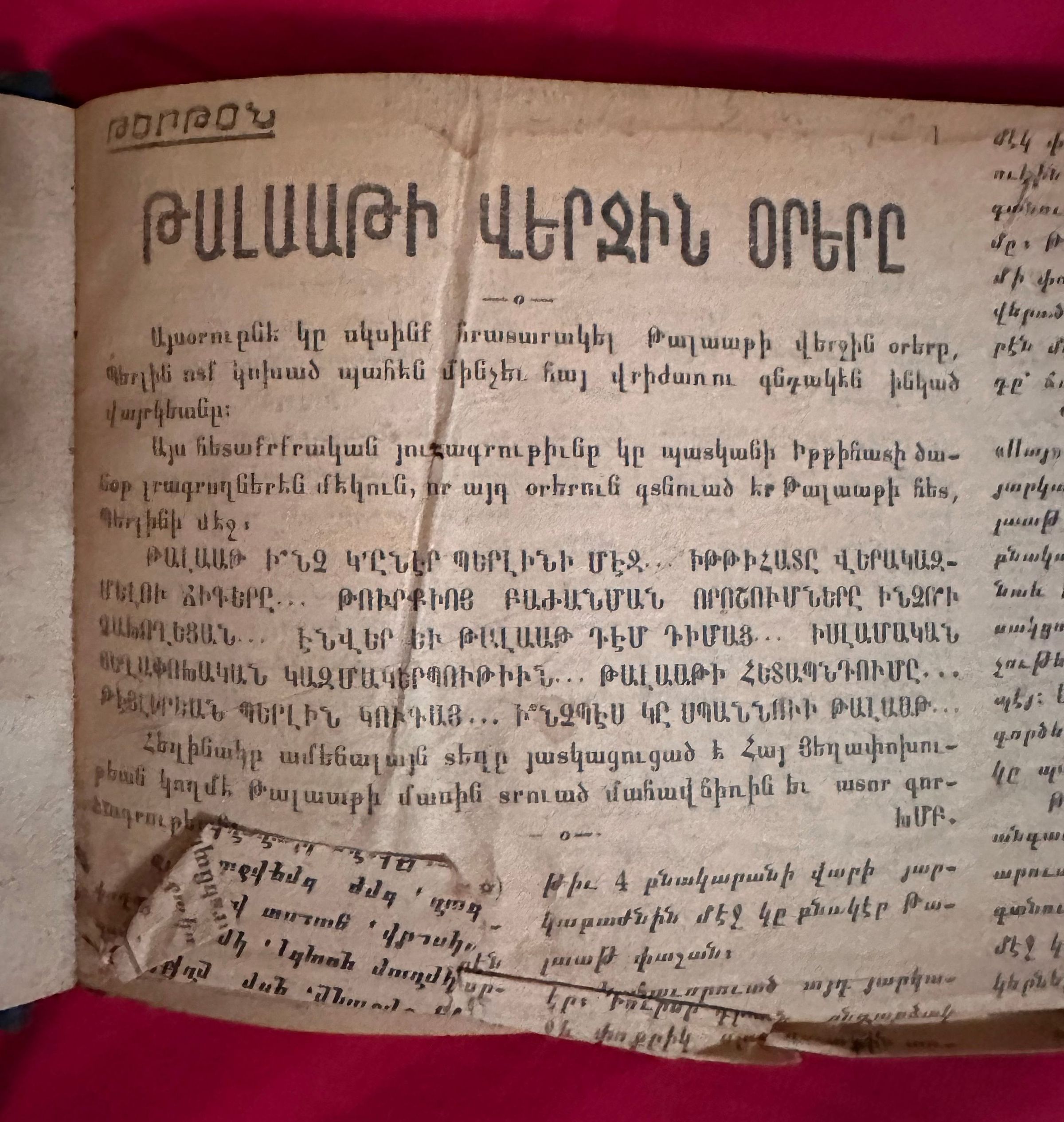 Թալաաթի Վերջին Օրերը. Transliteration: Talaati Verchin Orere. Translation: Talaat’s Last DaysDescription
