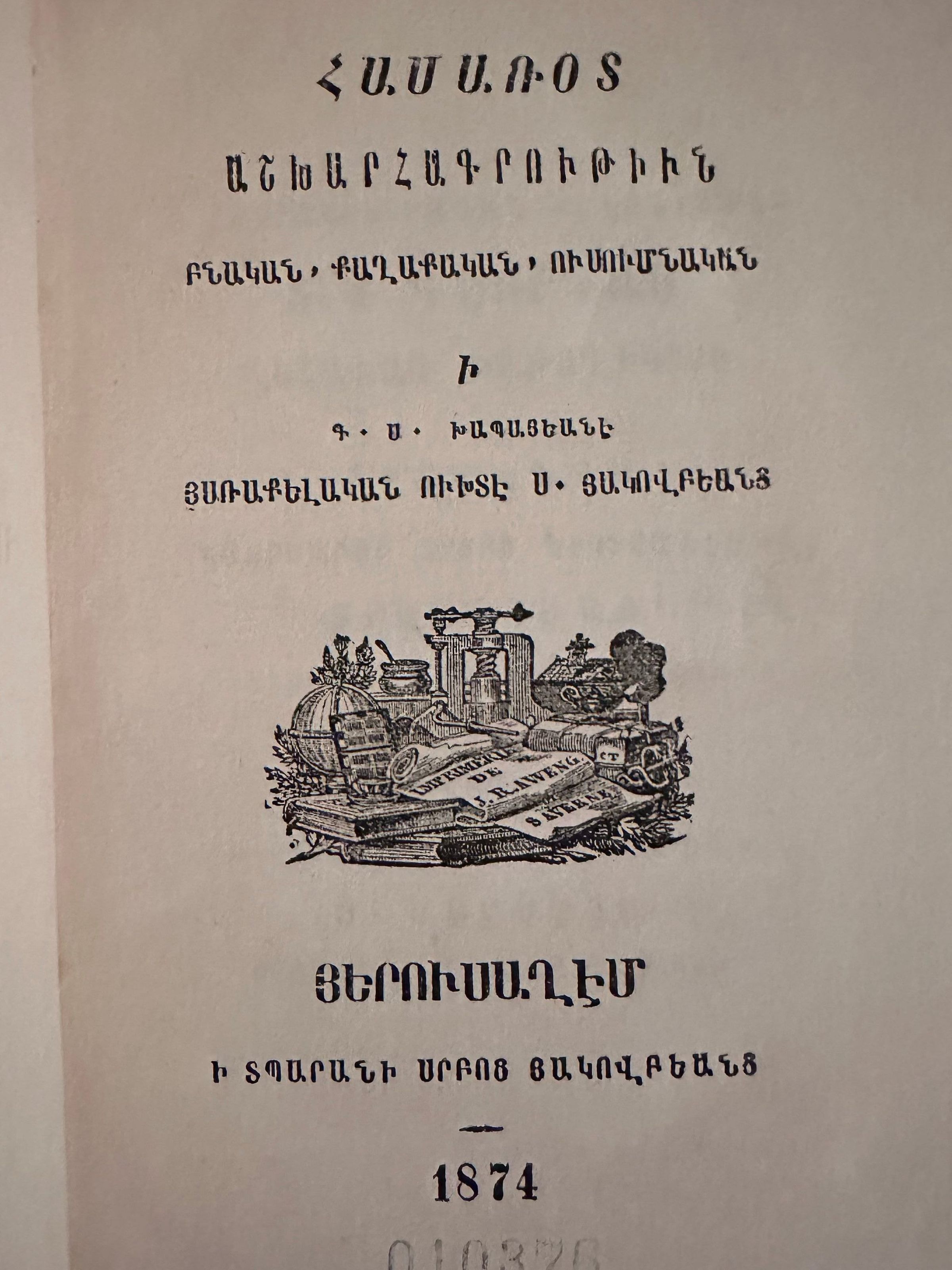 Hamarod Ashkharakrutiun (Sahak Khabayan, 1874)Secondary Title
