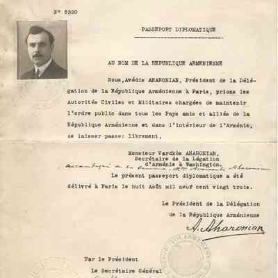 Vartkes (also spelled Vardges) Aharonian (1888–1965), son of the prominent author, statesman, and diplomat Avetis Aharonian, was a lawyer, writer, public figure, and educator who emigrated to the United States in 1923. Trained as a lawyer, he was also active as a writer, literary commentator, and polemicist, and was closely involved in Armenian national and cultural life. In the Armenian diaspora, he devoted himself to the education of Armenian children and the preservation of Western Armenian language and culture. Together with his wife, Armenuhi Tigranian Aharonian (1888–1962)—a poet, literary critic, and educator associated with the culturally influential Tigranian family—he compiled Hraztan, a widely used Western Armenian school reader published in the 1930s and named after the Hrazdan River in Armenia.