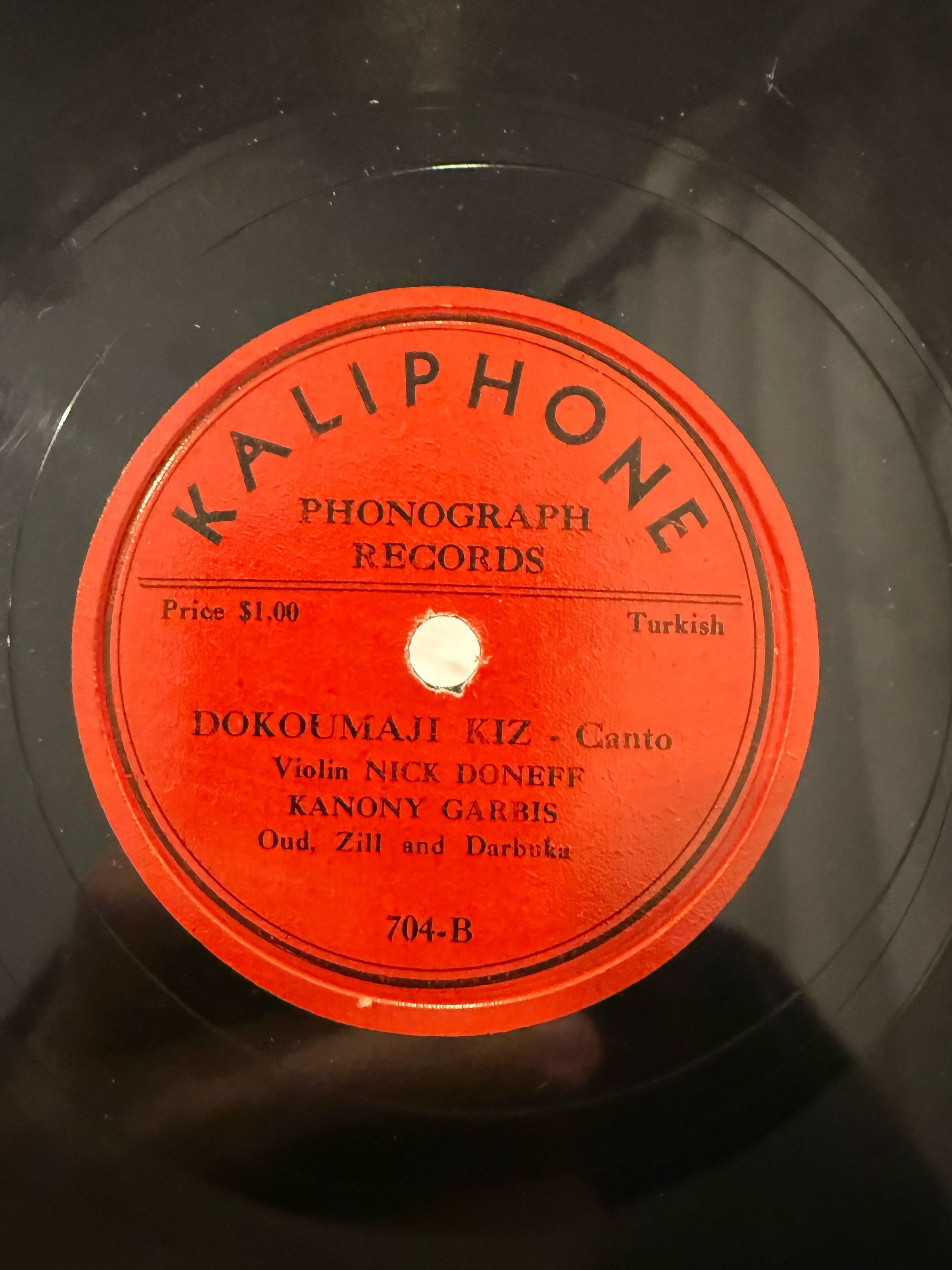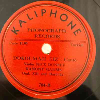 On the flipside is Kanuni Garbis, born Garbis Barkirjian in 1884 (or 1885) in Turkey—sources vary between Bursa and other cities—was a renowned musician and master of the kanun, earning him the title “Kanuni.” He gained prominence in Istanbul for both his exceptional voice and his deep knowledge of Eastern music theory (makams), often regarded as even more remarkable than his kanun playing. Garbis performed at the court of Sultan Abdul Hamid and, due to his vocal abilities, was ordained a deacon in the Armenian Church to serve as soloist for the legendary Armenian Patriarch of Constantinople, Maghakia Ormanian. He also toured the Middle East with his band and recorded extensively, producing approximately 60 78 rpm records before emigrating. He was music director of the Girls’ Music School in Smyrna.