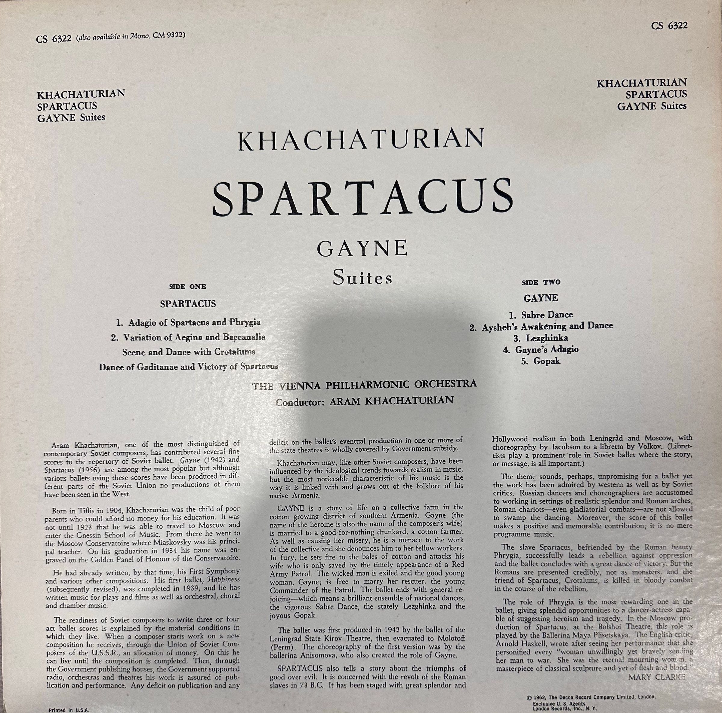 Aram Khachaturian, Spartacus and GayaneDescription