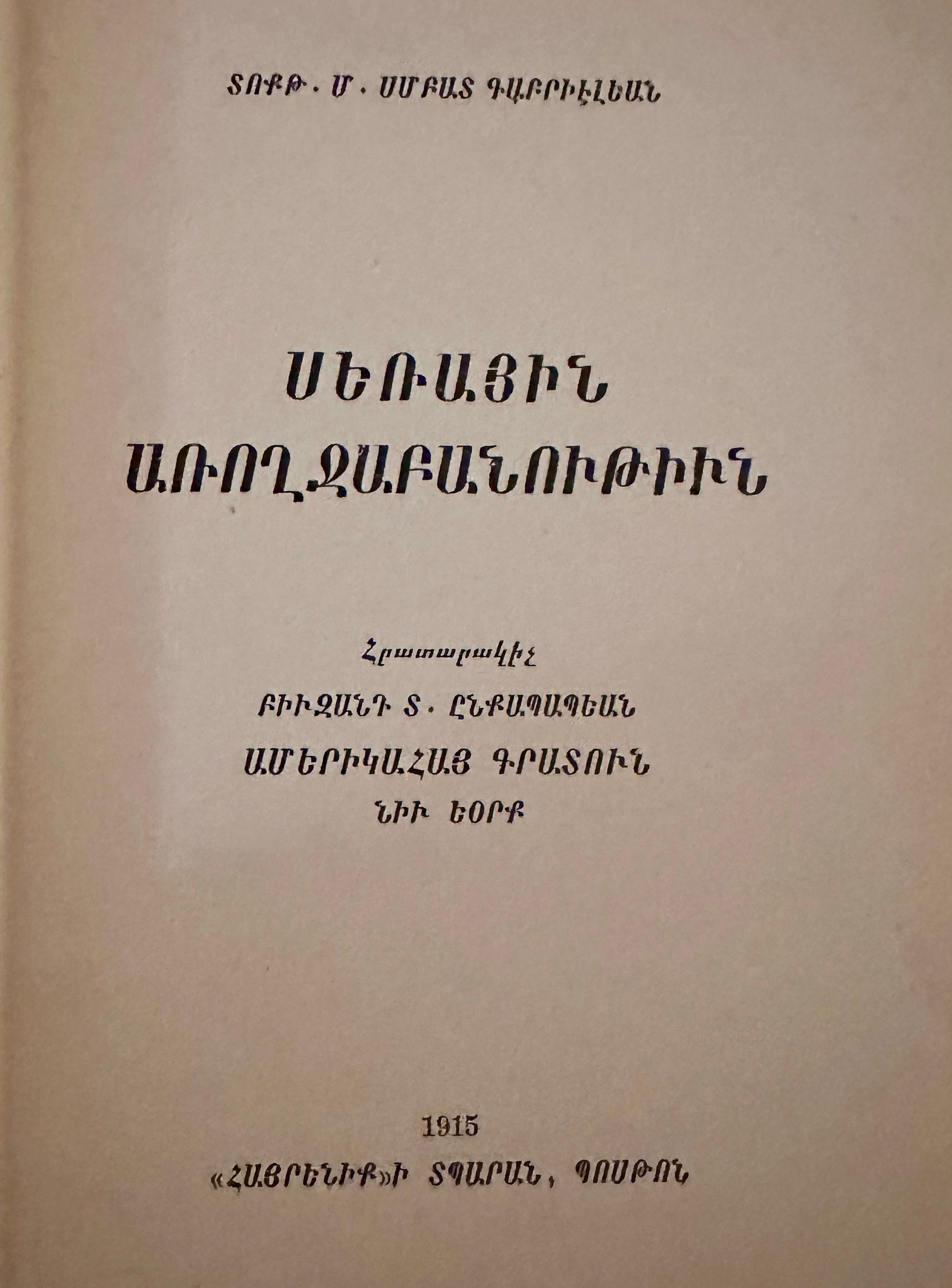 Serayin Aroghchapanutiun (Smpat Kaprielian, 1915)Secondary Title