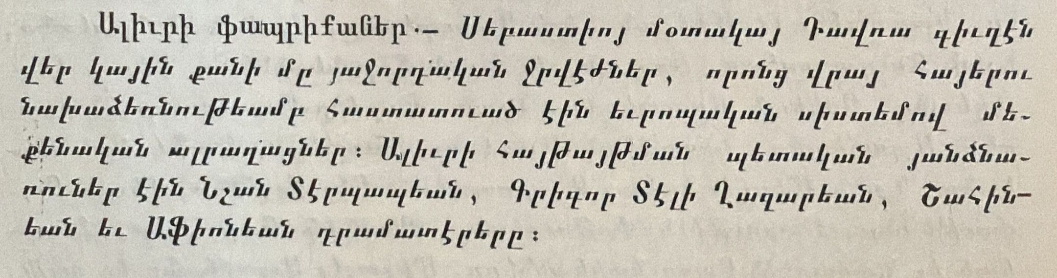 Avedis Shahinian lived in the Surp Kevork neighborhood in the center of Sivas. He was a prominent merchant who owned several flour mills in Tavra. An active community leader, he served in the Armenian National Assembly, the Meclis İdare (Administrative Council), and the Belediye Meclisi (Municipal Council). He married Elmas Bchakjian, with whom he had five sons—Shahen, Aram, Mgrditch, Levon, and Suren—and five daughters: Zaruhi, Paris, Asdghig, Khatun, and Khanum. Khanum was killed during a skirmish near Tavra, at Paşa Fabrikası, during the genocide. Paris married Dr. Kosmos Messaiyan, later moved to the Armenian SSR in 1926, and died in Kislovodsk in 1939. Shahen, born in 1890, also moved to Armenia, where he died in 1972; he is buried in the Charbakh cemetery.Note Type