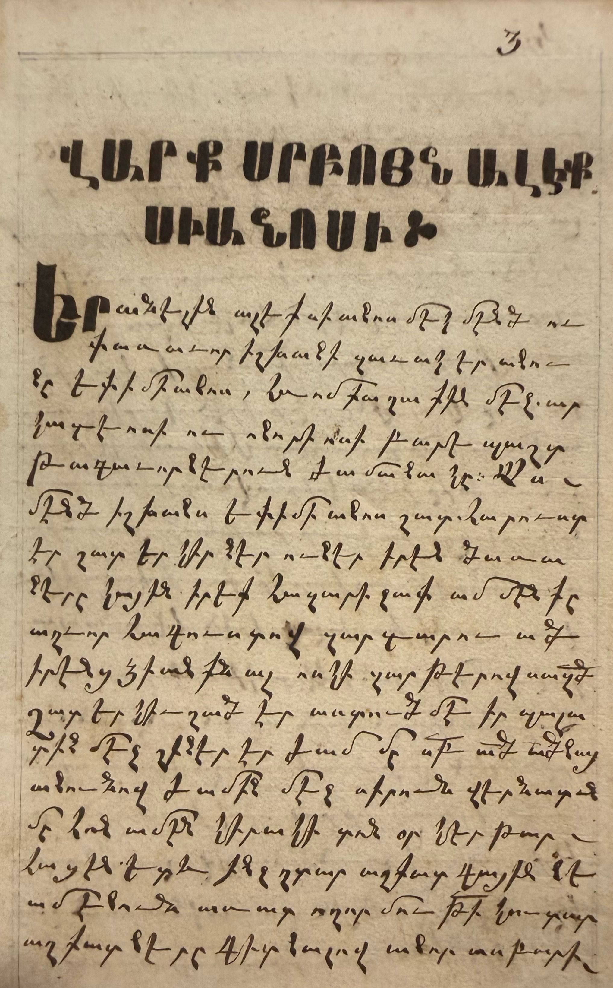 A second Armenian version, longer and stylistically distinct, presents the saint as entirely anonymous, referred to only as “the blessed one,” “the voluntary pauper,” and “the son of the king of Rome.” This text, known as Arm II, survives in manuscripts such as M789 and was published by the Mekhitarists in Venice in 1855. It omits all personal names except that of Bishop Rabbula of Edessa and includes additional episodes and dialogues that do not appear in Greek or Syriac sources. Its deliberate emphasis on anonymity and humility, expressed in the saint’s insistence that his name be forgotten, closely parallels early Syriac ascetic ideals and may represent an adaptation of a pre-Byzantine Syriac source.