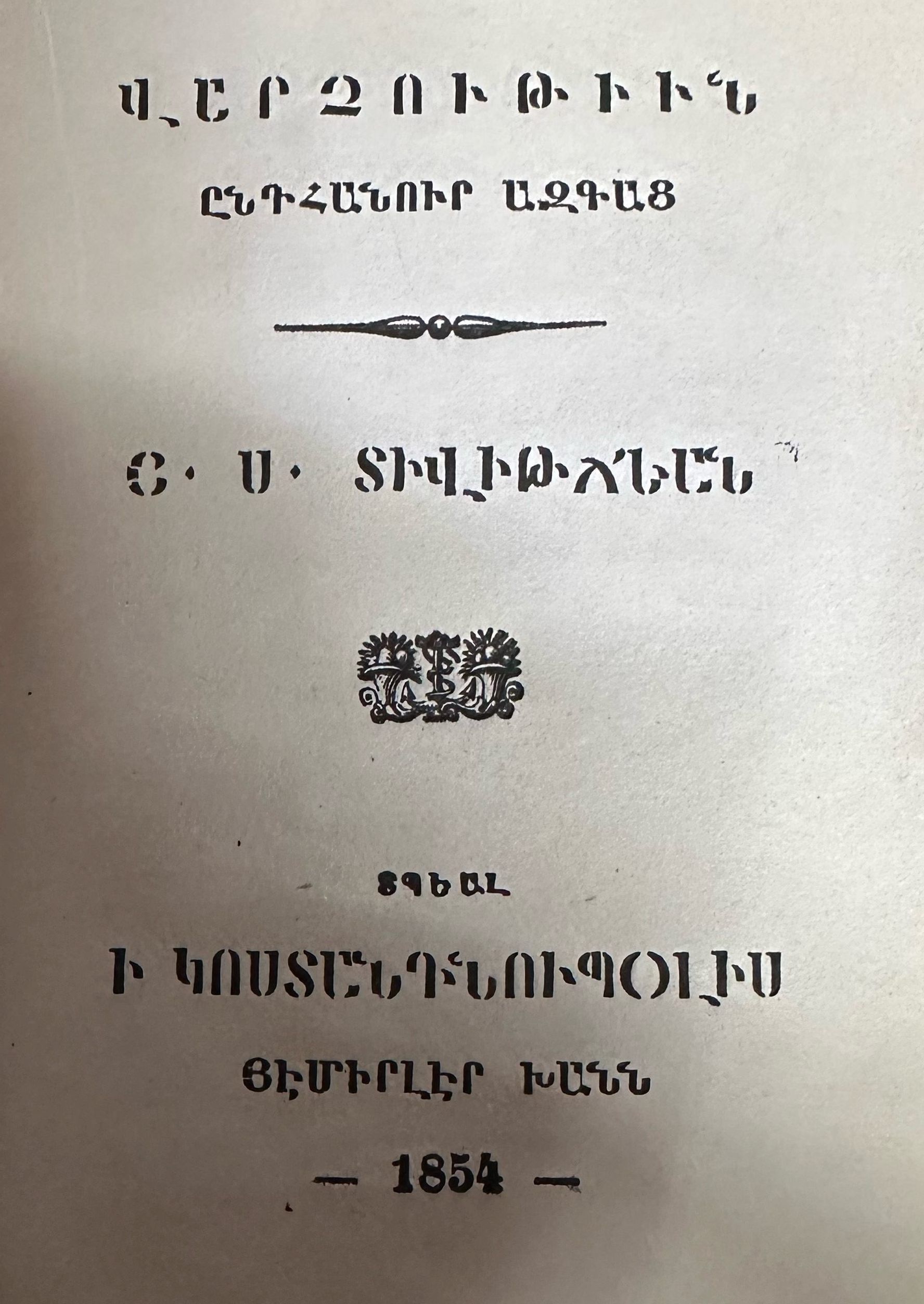 Varchutiun Enthanur Azkats (Hagop S. Divitjian, 1854)Secondary Title