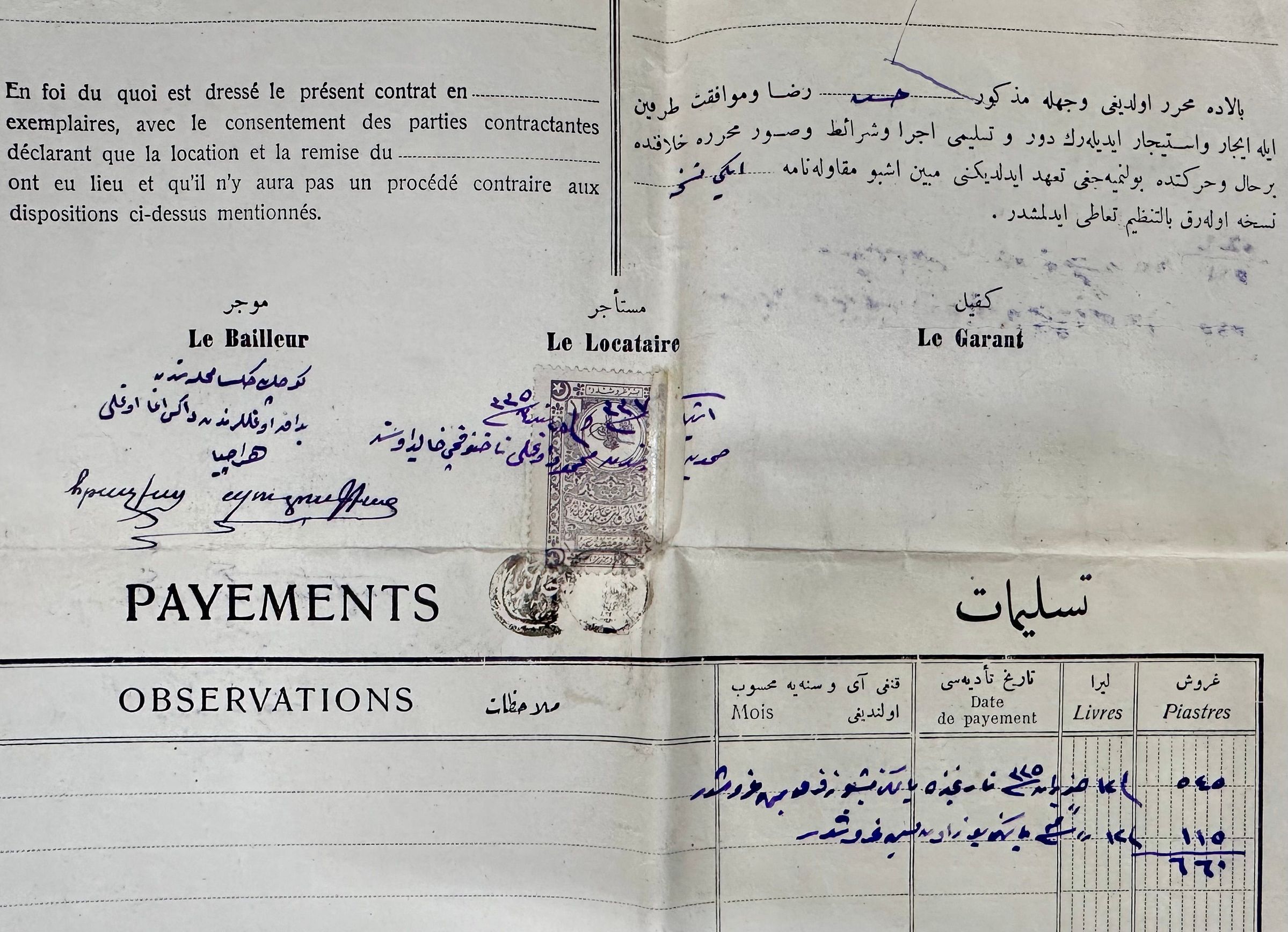 Rental contract for lessor Hrachia Boudakian from Sivas.