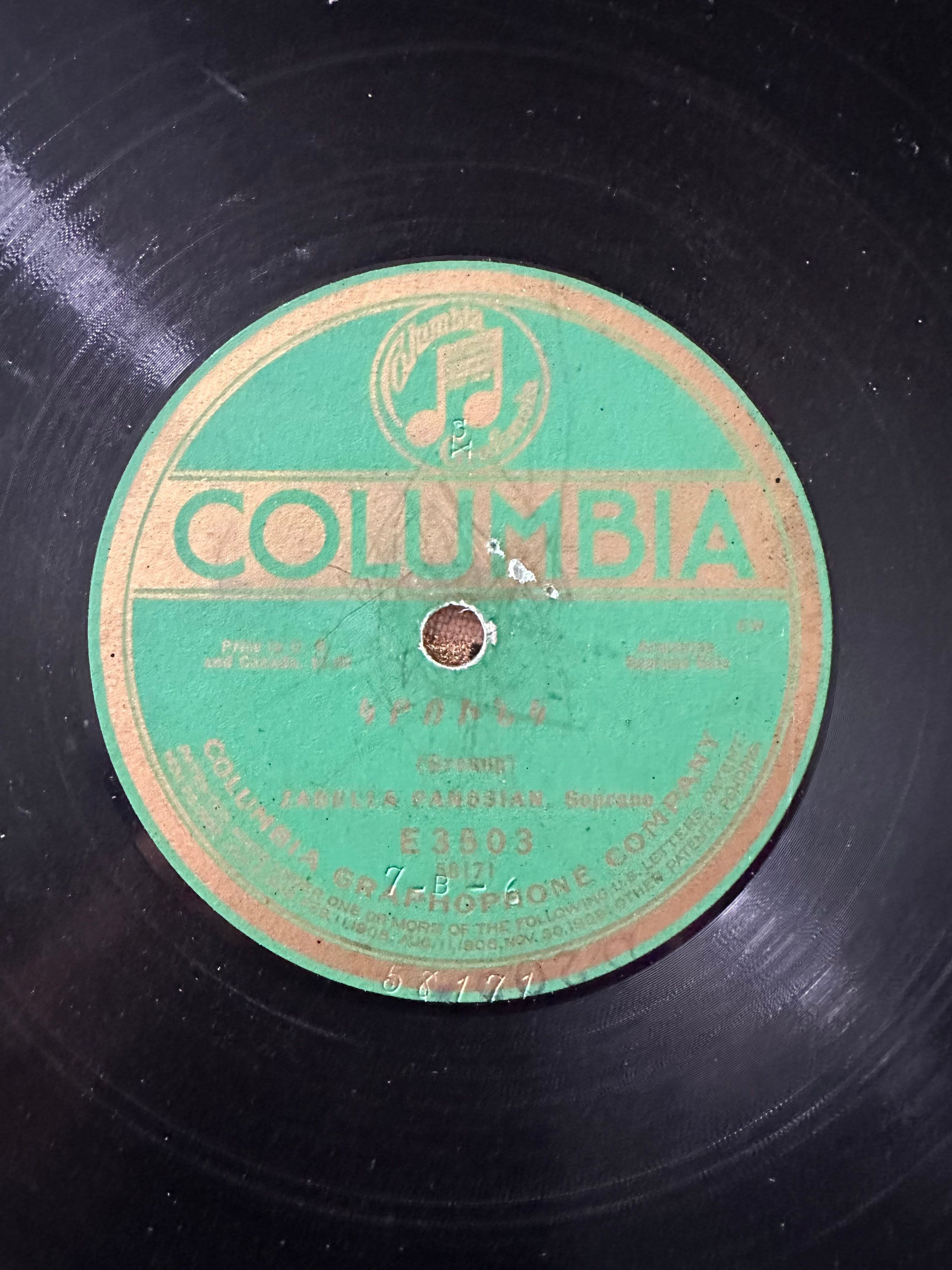 Zabelle Panosian’s recording of the Armenian folk classic Groung was one of the top three best-selling records in the Armenian-American community during the 1920s. Unlike the well-known Gomidas version, her rendition featured a distinct melody, which she had learned in her hometown of Bardizag, near Izmit, Turkey. Grounk (Crane), a folk song already over 300 years old at the time of her recording, remained popular among Armenian listeners throughout the 1920s. Its success continued until 1931, when Columbia Records removed its Armenian-language catalog.Audio Format