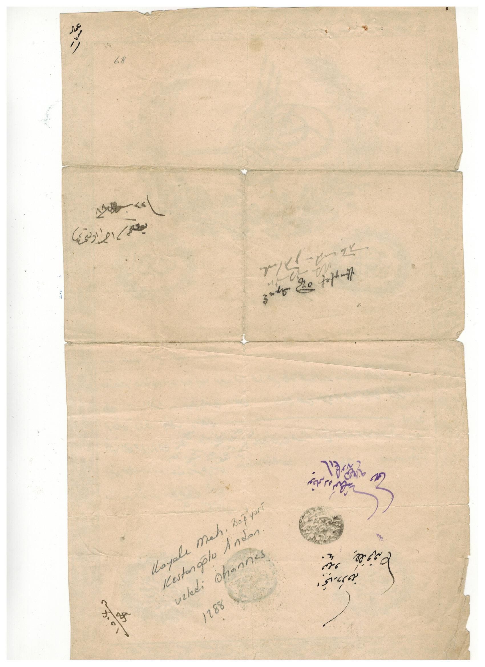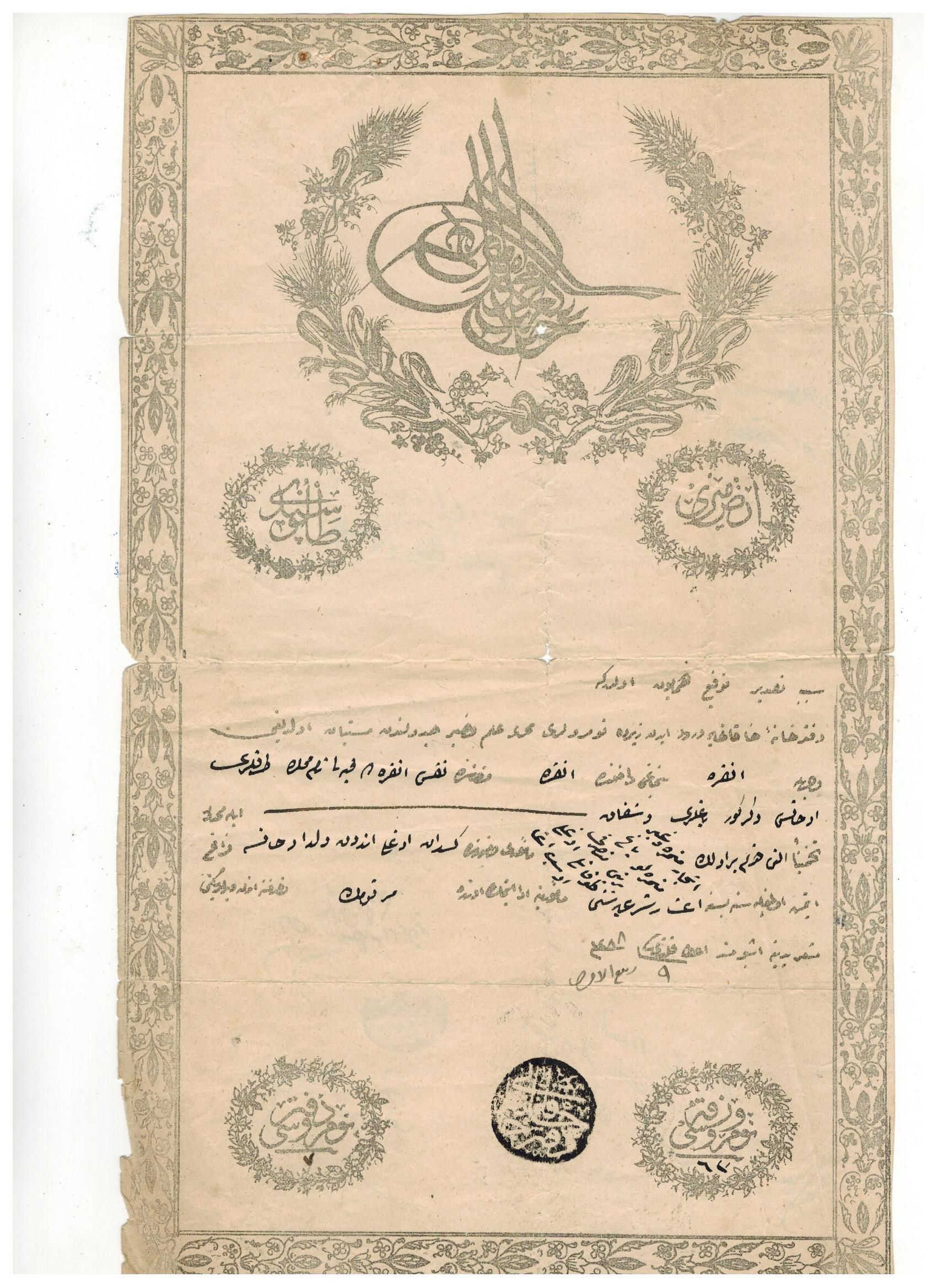 An 1872 Imperial Decree Regarding the Transfer of a Vineyard Plot in the Kayalı Neighborhood of Ankara to Kestanoğlu Andon son of OhannesGeneral Notes