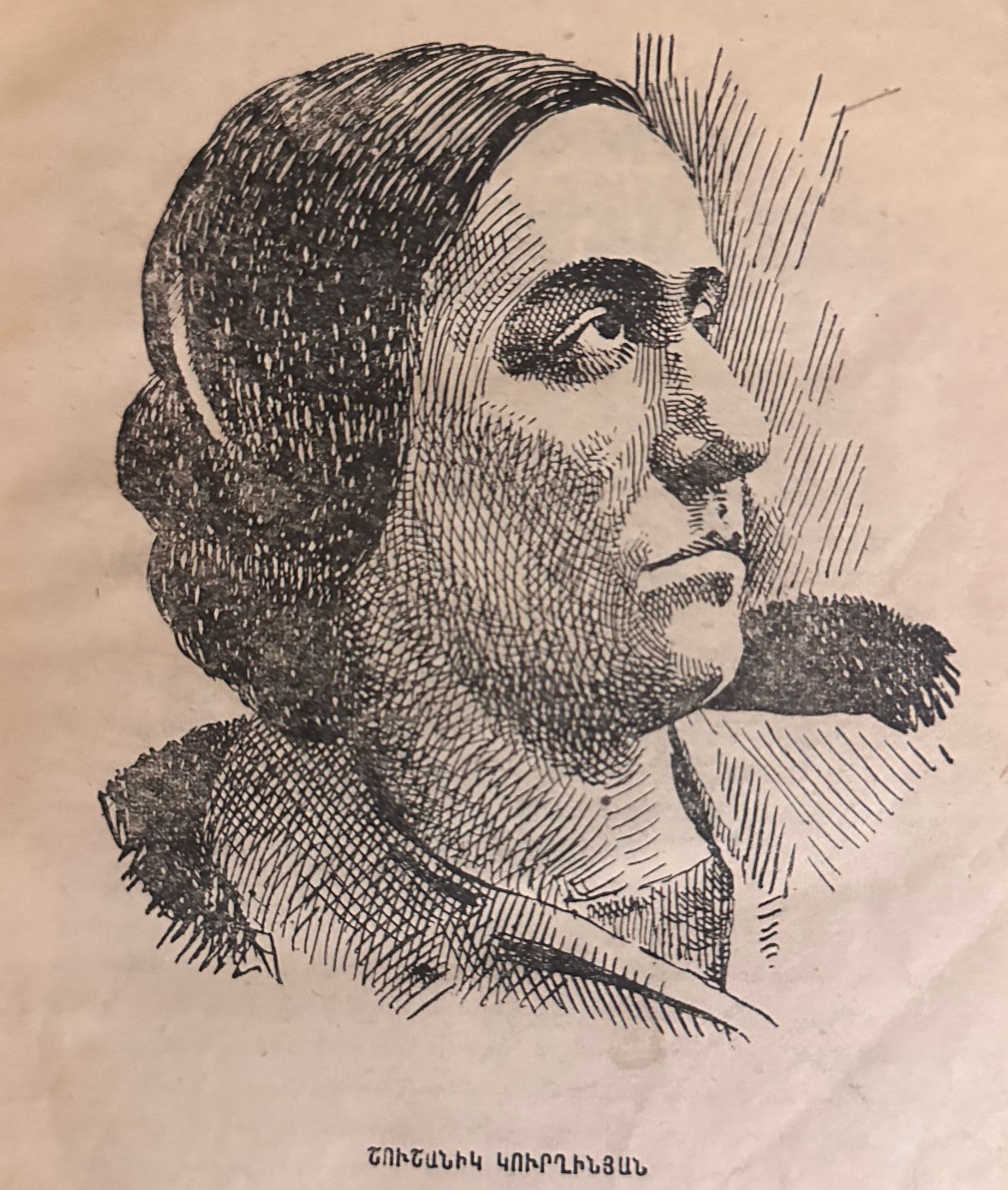 Shushanik Kurghinian (1876–1927) was an Armenian poet whose work is associated with early socialist and feminist currents in Armenian literature. She was born in Alexandropol (present-day Gyumri) in the Russian Empire and received her education there before continuing studies in Tiflis, an important cultural center for Armenians at the turn of the twentieth century. Kurghinian was influenced by Russian revolutionary thought and Marxist ideas, which shaped both the themes and tone of her poetry. Her writing often addresses social inequality, class struggle, the exploitation of labor, and the constrained position of women, frequently adopting a direct, unsentimental voice. Unlike many of her contemporaries, she foregrounded the experiences of working-class women and critiqued patriarchal norms within both society and the family. Kurghinian published several collections during her lifetime and contributed to periodicals connected to progressive and leftist circles. Although her work was not widely canonized in her lifetime, it has since been recognized as an important contribution to modern Armenian literature and as an early articulation of feminist and socially engaged poetry in the Armenian tradition.Inscription/Signature/Marks