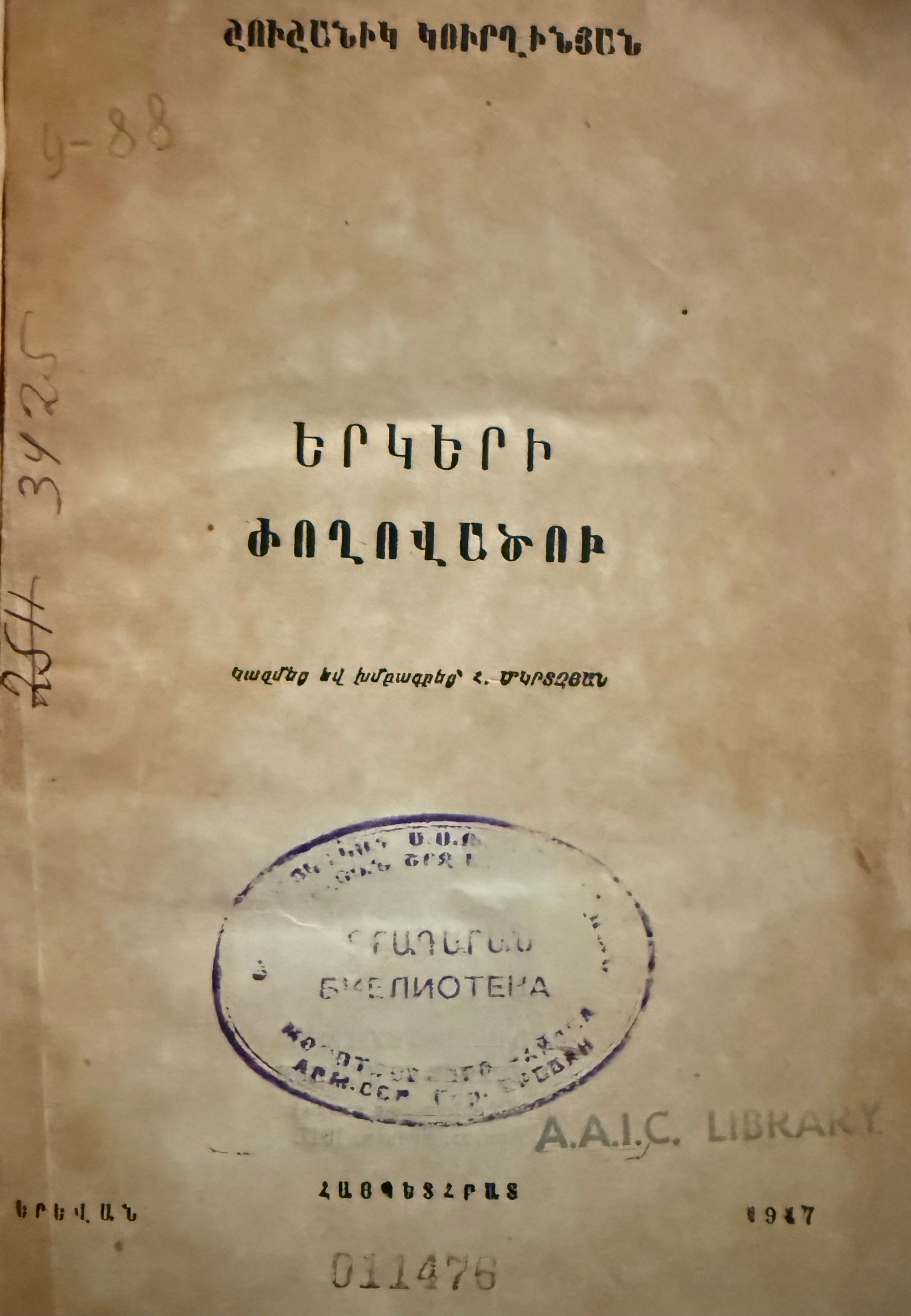 Ergeri Joghovatsu (Shushanik Kurghinian, 1947)Secondary Title