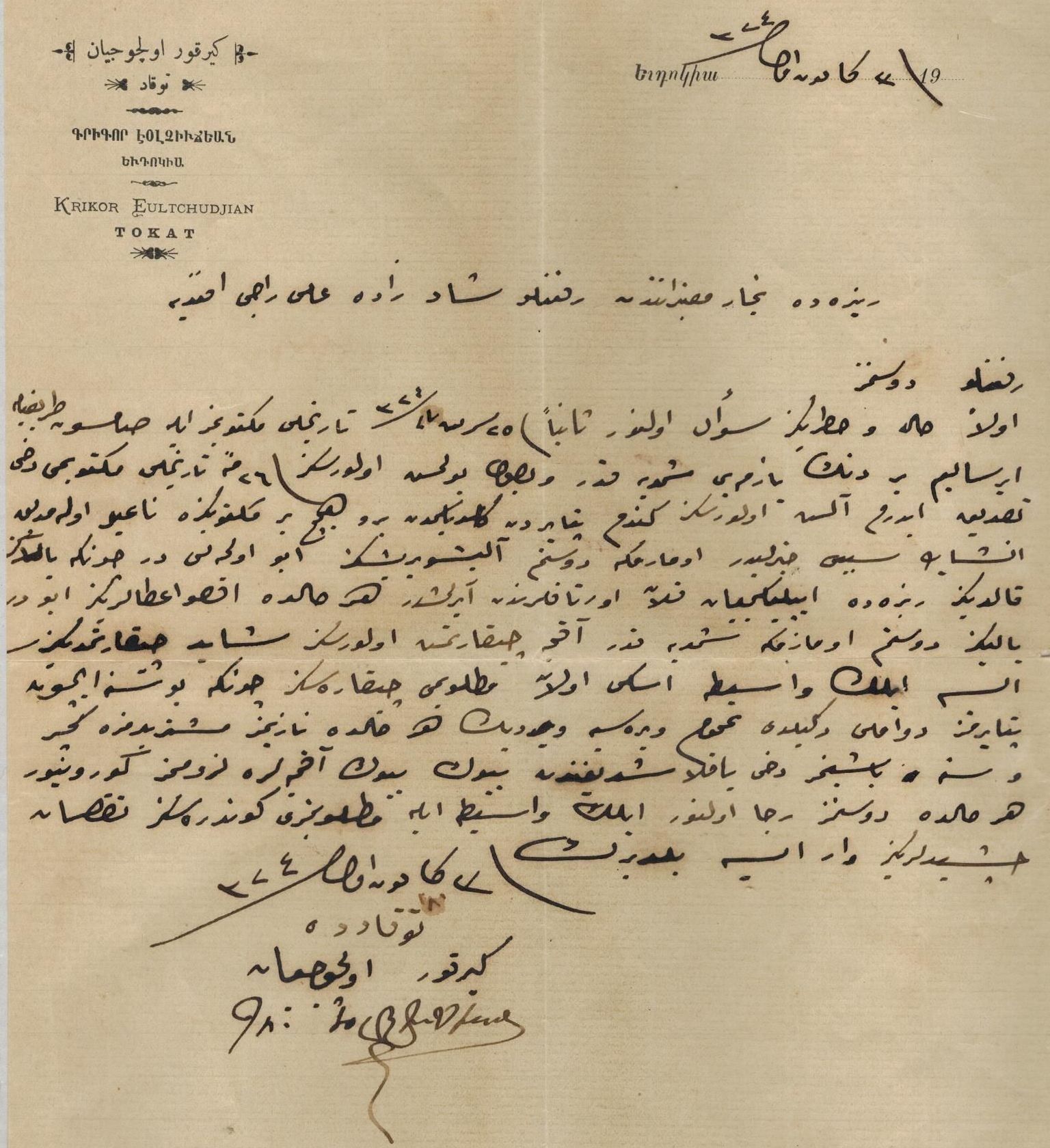 First of all, I ask about your health and well-being. Secondly, regarding our letter dated November 25, 1324 (December 8, 1908), which we sent via the Samsun route, if you have by now found the bundle of writings we dispatched, I also confirm receipt of your letter dated the 24th. Since I returned from the fair, I have not been able to receive any of your letters.