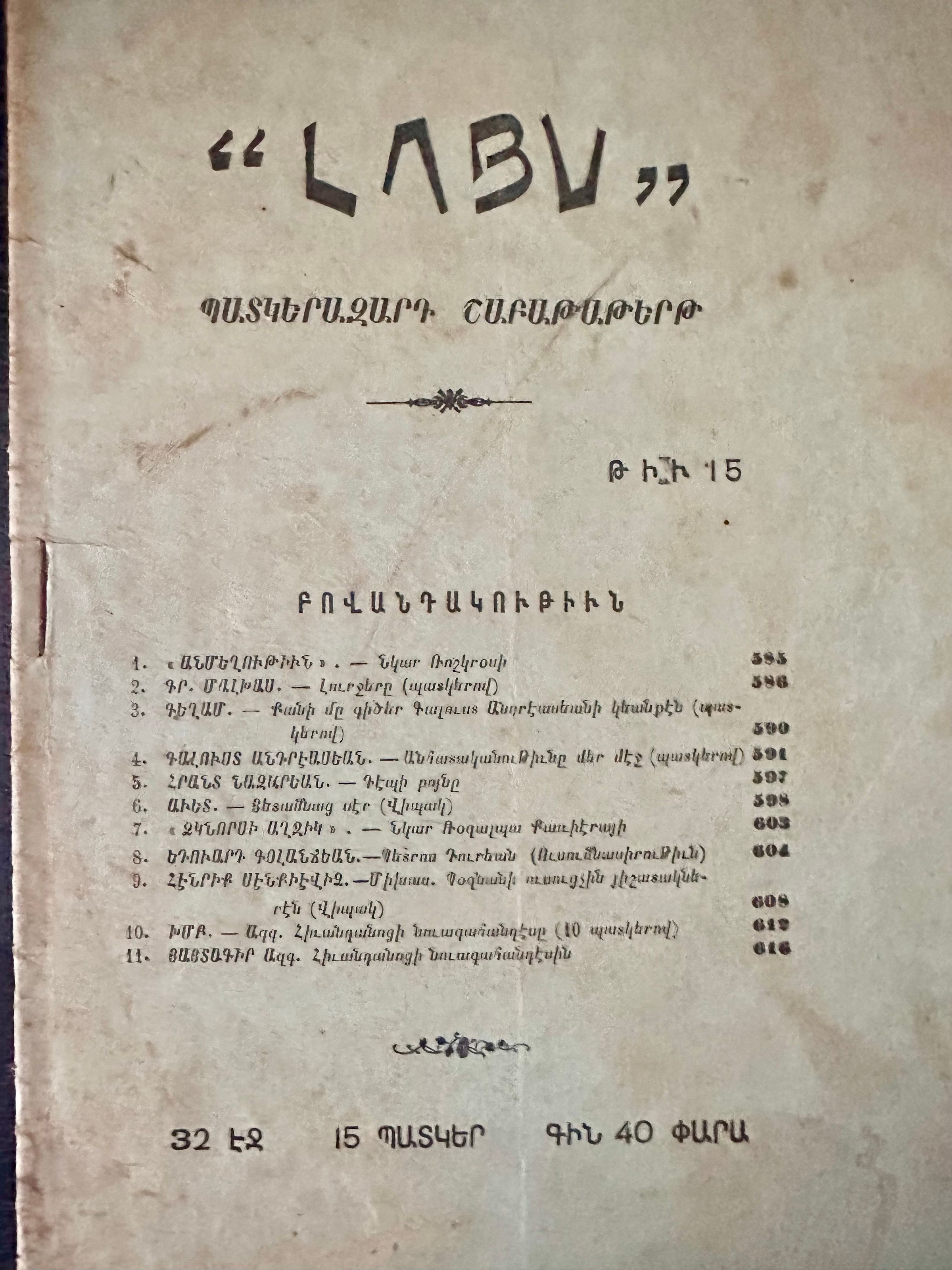 «Լոյս» պատկերազարդ շաբաթաթերթ "Light" Illustrious Weekly was a periodical edited by Aram Andonian. It highlighted the developments of the Armenian literary world.Book Details