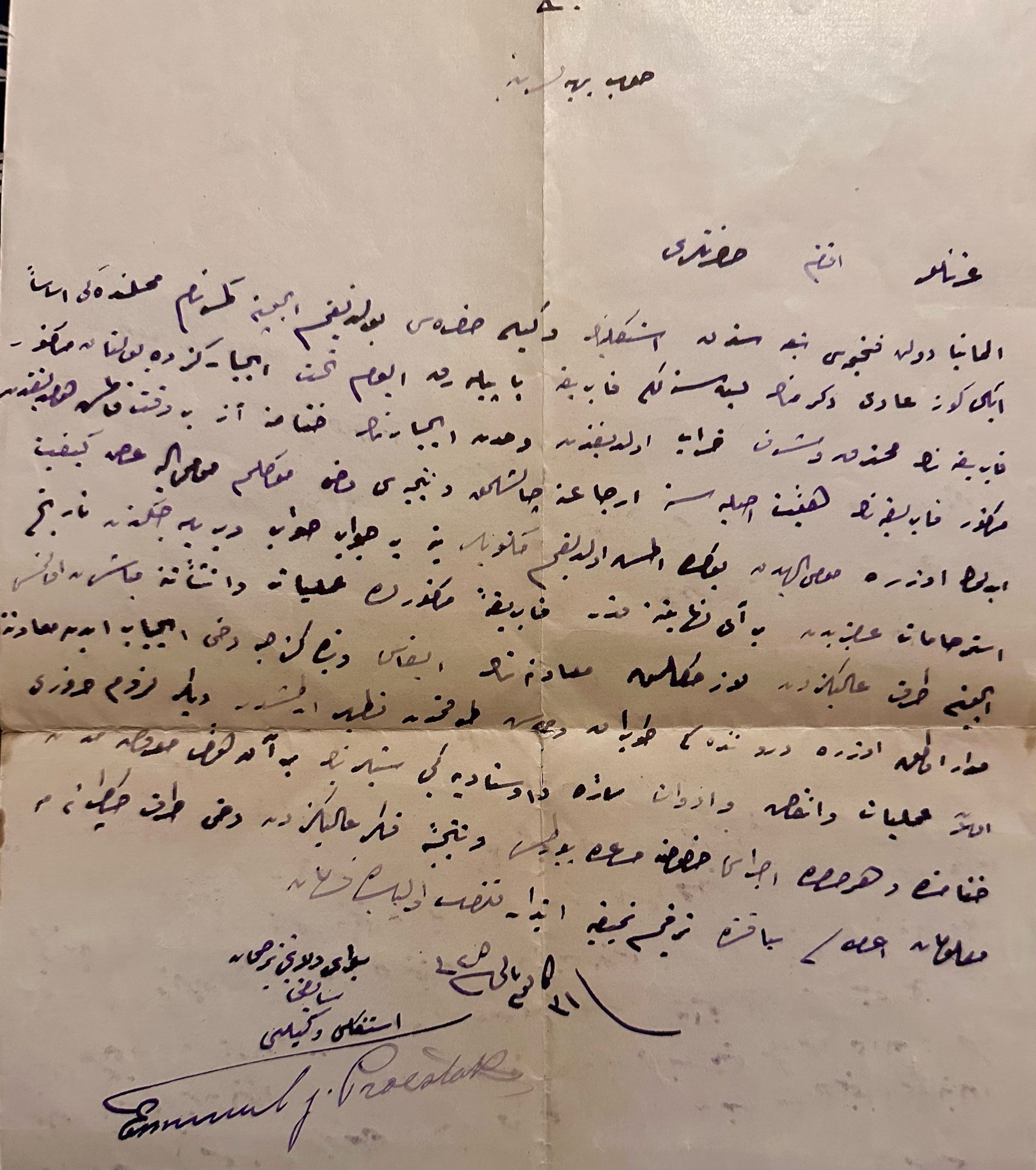 A letter sent by the former interpreter of the Sivas Province, Emmanuel Proeslan, to Garabed Şahinyan.
